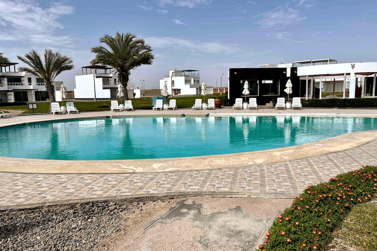 V Paracasu, ki slovi po razgledu na ocean, ta namestitev izstopa po visokokakovostni konstrukciji s štirimi spalnicami: dvema zakonskima apartmajema in dvema sobama s pogradi, od katerih ima vsaka zasebno kopalnico. V notranjosti je odprta jedilnica in bivalni prostor z minimalističnim dizajnom. Zunaj je bazen in prostor za žar. Vključuje sodobno kuhinjo in dodatno kopalnico za goste. Oprema skupnosti vključuje bazene za odrasle in otroke ter igralnico. Združite udobje doma z butikom