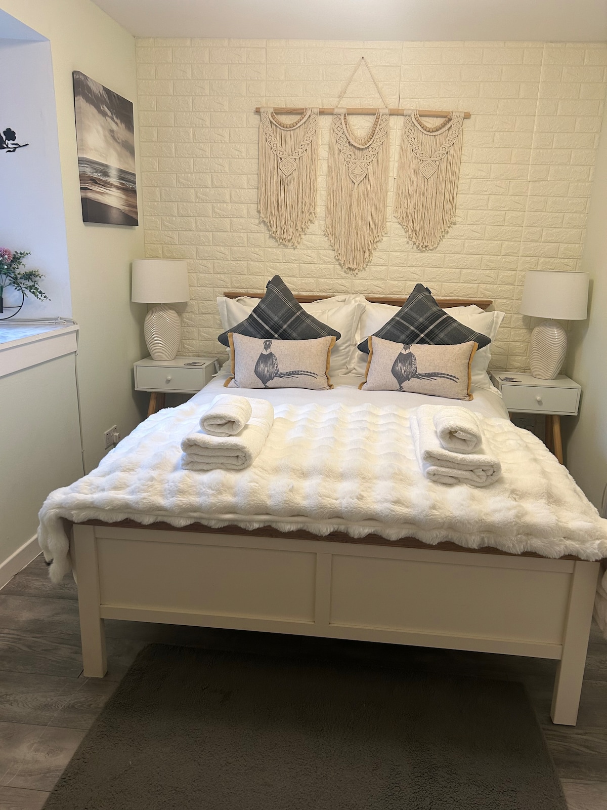 Prijetna tradicionalna hiška na deželi z vso sodobno opremo, ki se nahaja na morski obali s panoramskim razgledom na Kilbrannan Sound. V celotni hiški je plin z električnim ognjem v udobnem salonu. Sodobna kuhinja/jedilnica ima štedilnik,mikrovalovno pečico,hladilnik in pomivalni stroj,ki vodi do pralnega stroja,sušilnega stroja in zamrzovalnika. Salon ima pametno TV,dobro širokokotno in cd-predvajalnik. Majhna dvojna spalnica ima omaro in predale. Poleg spalnice je sodobna kopalnica s kadjo in prho nad kopalnico.
