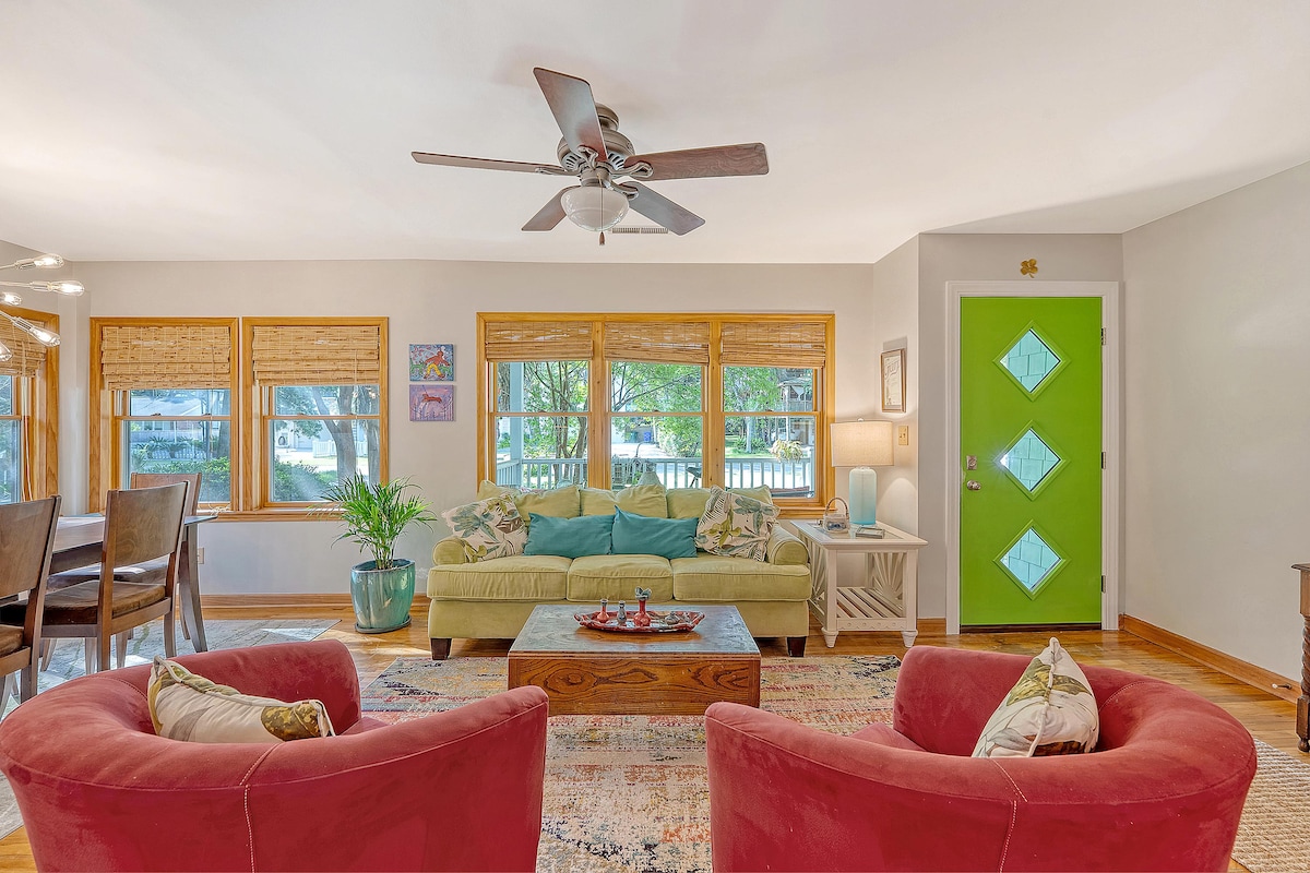 Palmetto Porch je popoln oddih za skoraj vsako družino. Ima veliko raziskovalnega prostora (narava!), veliko zunanjega bivalnega prostora in veliko notranjega bivalnega prostora (ko se narava odloči, da morate biti v zaprtih prostorih). Na voljo so zbirne sobe z medijsko sobo, kuhinjo, sončno sobo ali lepo urejeno predvajano verando. Možnosti in priložnosti so neskončne. Izberite svojo smer, vzemite martini in uživajte v vsem, kar ponujata otok in naša hiša!