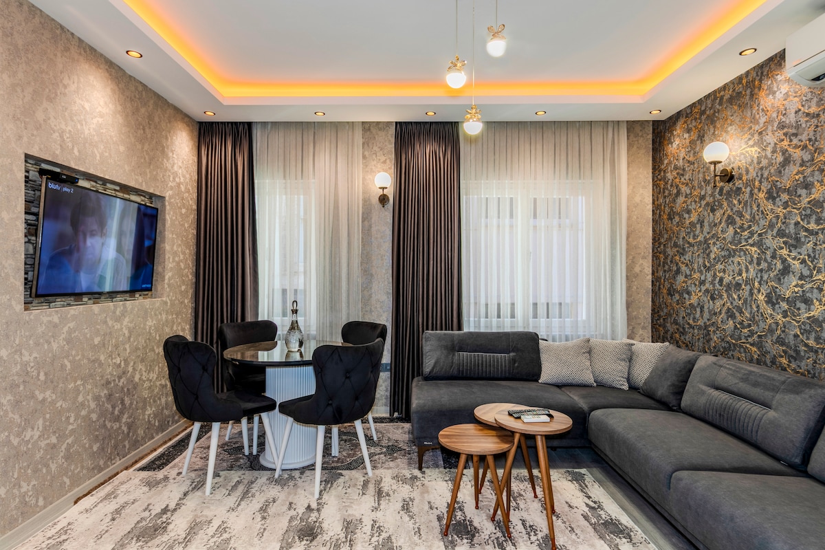 To zasebno luksuzno stanovanje je bilo pred kratkim obnovljeno. Ima visok strop (3,6 metra), precej veliko kopalnico, spalnico z zakonsko posteljo, savno, masažno kad, stenski projektor (fiksni!) in kamin. Je zelo primeren za kratkotrajno ali dolgotrajno bivanje obiskovalcev, parov in družin, nahaja pa se v 1. nadstropju našega stanovanja v varni ulici v Beyoglu/Taksim. Dosegljiv je z dvigalom ali stopnicami. Naša stavba se nahaja poleg ulice Istiklal Street in 10 min hoje od znamenitega pristanišča Galata. Internet je 100 MBPS trdna vlakna!