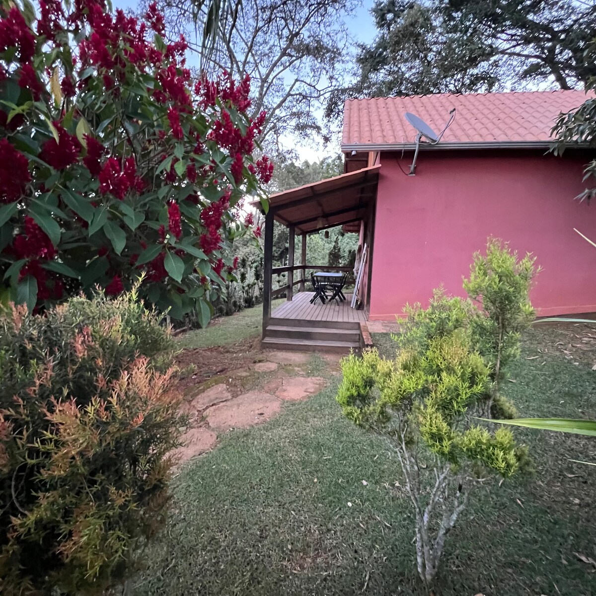 Brunarica na kmetiji Boa Esperança z 1 spalnico z 1 zakonsko posteljo, 1 dnevno sobo z 2 posteljama/kavčema, 1 kopalnico, kuhinjo, balkonom. Sva par inženirjev, ki sva investirala v sanje o življenju na podeželju, kjer je veliko zelenja in vode, kjer se učiva od narave in ceniva preprostost. V vsakem kotu planinskega doma je del naše zgodovine in ljubezni, ki jo čutimo do kmetije. Zato iščemo ljudi, ki bodo skrbeli za naš prostor tako kot mi.