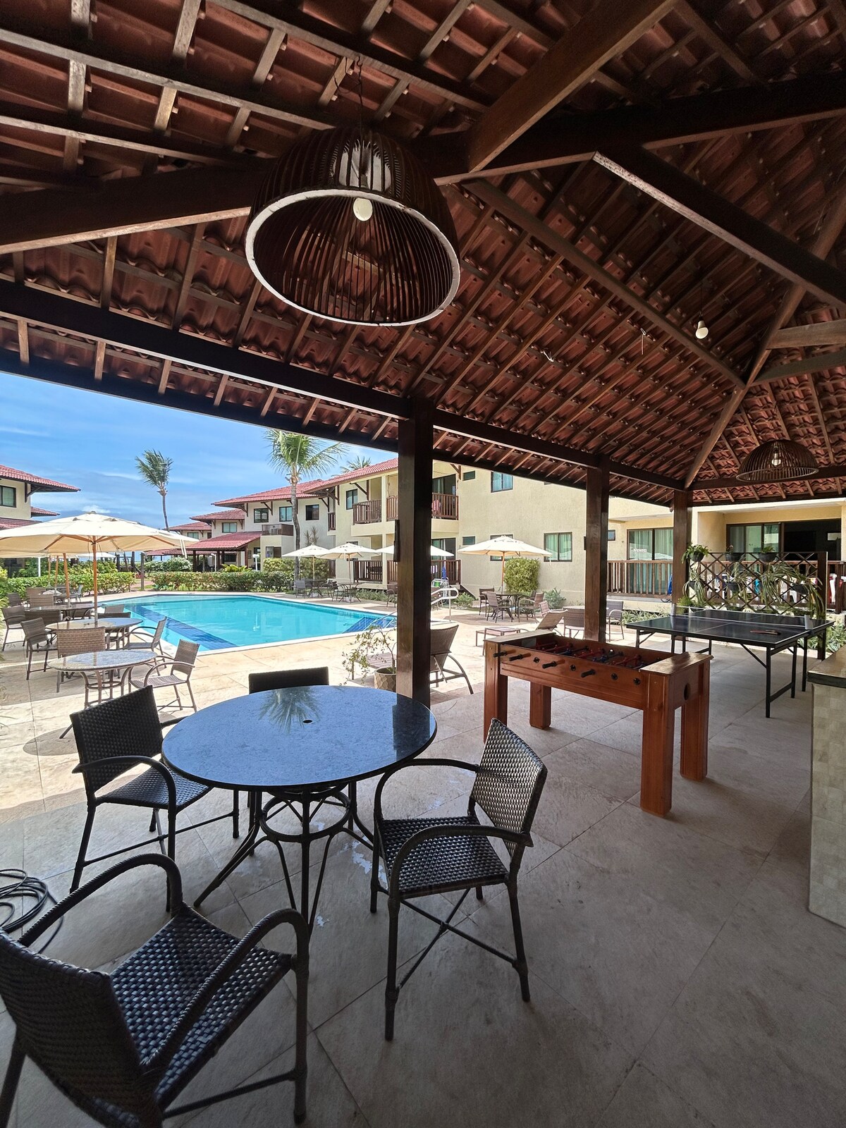 Opremljeno stanovanje v ograjeni skupnosti z: 🔅2 bazena 🔅3 prostori za peko na žaru 🔅Wi-Fi 🔅Parquinho 🔅Veliko zelenih površin 🔅Dve parkirni mesti v lastniškem stanovanju 🔅Pertinho da Praia (3 min hoje) 🔅Čajna kuhinja s plinskim štedilnikom, hladilnikom in drugimi pripomočki. 🔅 Nadzor garažnih vrat. Nahaja se ob glavni cesti Itamaracá. 9 minut vožnje od Orange Fort in 5 minut vožnje od Pilar Squarea. Blizu restavracij, tržnic, lekarn in druge opreme.