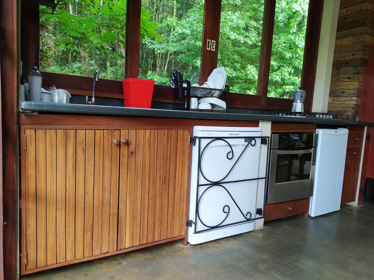 Na višini 1600 m, ob vznožju Pedra do Forno, je prostor skoraj v celoti pokrit z domačim gozdom. S pogledom na Pedra do Bode je hiša obdana z Arraucárias, armadillosom, opicami, pticami in jeleni (sčasoma mervi). Stoletna okna in vrata, veliko stekla, pohištvo iz 50. let prejšnjega stoletja. Topla kopel, s plinskim ogrevanjem. Gurmanska kuhinja s štedilnikom na drva, žarom, električno pečico, sodobnim štedilnikom in pomivalnim strojem. Wi-Fi z dobro hitrostjo.