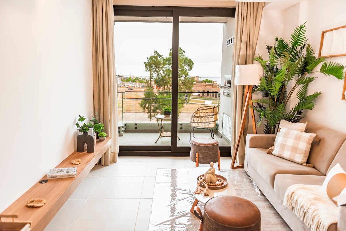 Stanovanje z balkonom s pogledom na reko in odlično lokacijo!📍. Sprehodite se do Costanere, Playe San Jose🏖️, restavracij🍴 in nakupovalnega središča Shopping Costanera🛍️. Glavna soba z zakonsko posteljo🛏️, dnevna soba z raztegljivim kavčem (2,10 x 0,95 x 0,92)🛋️, jedilnica, integrirana kuhinja in sodobna kopalnica 🚿 Non stop varnostna služba 🔒 in storitev pranja perila v stavbi za vaše udobje. Aires se razdeli v sobi in jedilnici.