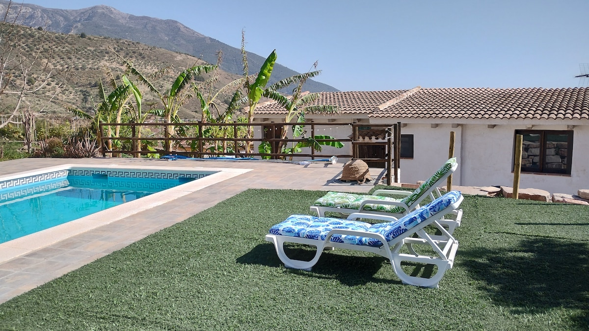 - Tik ob vznožju naravnega parka Sierra de Almijara s čudovitim razgledom na morje in mesta Frigiliana in Nerja. - Sončen bazen od sončnega vzhoda do sončnega zahoda! Bazen je ograjen, priporočamo družinam z majhnimi otroki. - Velika terasa z vrtom, 2 žaroma, veliko zasebno parkirišče in obdana z drevesi avokada. - Različni saloni in prostori za sprostitev. - Povezava Wi-Fi - Smart TV 43"
