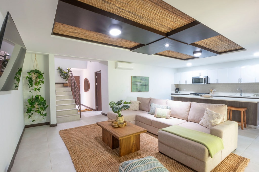 This new home, developed with modern architectural design, an open floor plan and 50% green areas, awaits for you! At only 600 meters from the beach (10 min). The house has 3 bedrooms fully furnished with unique and custom furniture handcrafted by skilled Costa Rican craftsmen. Has a private pool and the ONLY house with a private back patio/terrace for gatherings. This is a gated community, with 24/7 security guard. This house will make you feel welcome, safe and relaxed. Enjoy your visit!