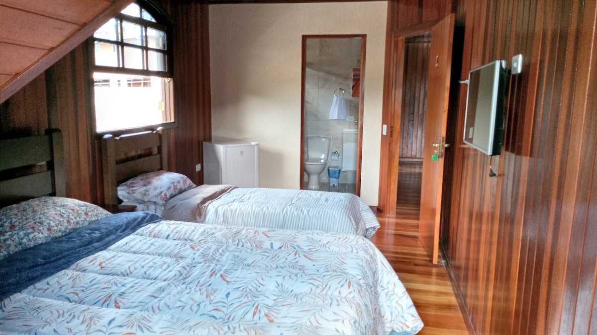 Confortável suíte/estúdio, 28 m2, com entrada independente da casa e linda vista. Espaçosa, acomoda confortavelmente até 4 pessoas. Conta com infraestrutura para o preparo de pequenas refeições. Roupa de cama e banho, além de cobertores e edredons, perfeitamente higienizados. Internet com fibra ótica de alta velocidade. Tv com 80 canais. Localizada no Alto do Capivari, cerca de 2km e meio, do centro turístico. Acesso fácil, com apenas 600mts em rua de terra batida, saindo do asfalto.