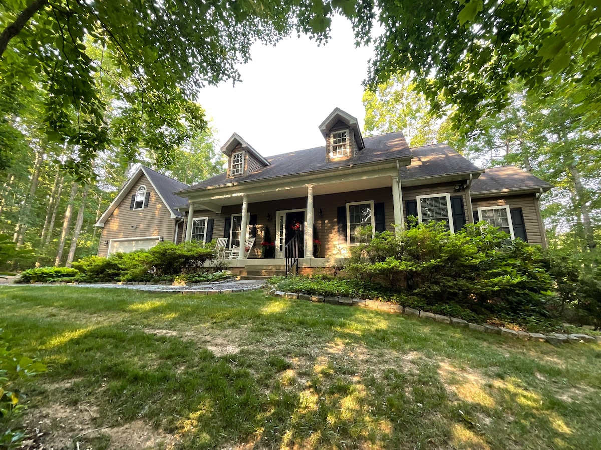 This unique and secluded cabin sits on 75 acres in the Blue Ridge mountains. Enjoy the cozy wood fireplace, hot tub, charcoal grill, and fast, reliable fiberoptic internet if you need to get some work done while you're away. It has a washer and dryer, a full kitchen, and is pet-friendly (no pet fee!), so you can enjoy it with the whole family. There is a 4K 55” smart TV with apps, a Tesla LVL 2 charger, a cabinet full of board games, books, and plenty of items to entertain both kids and adults!