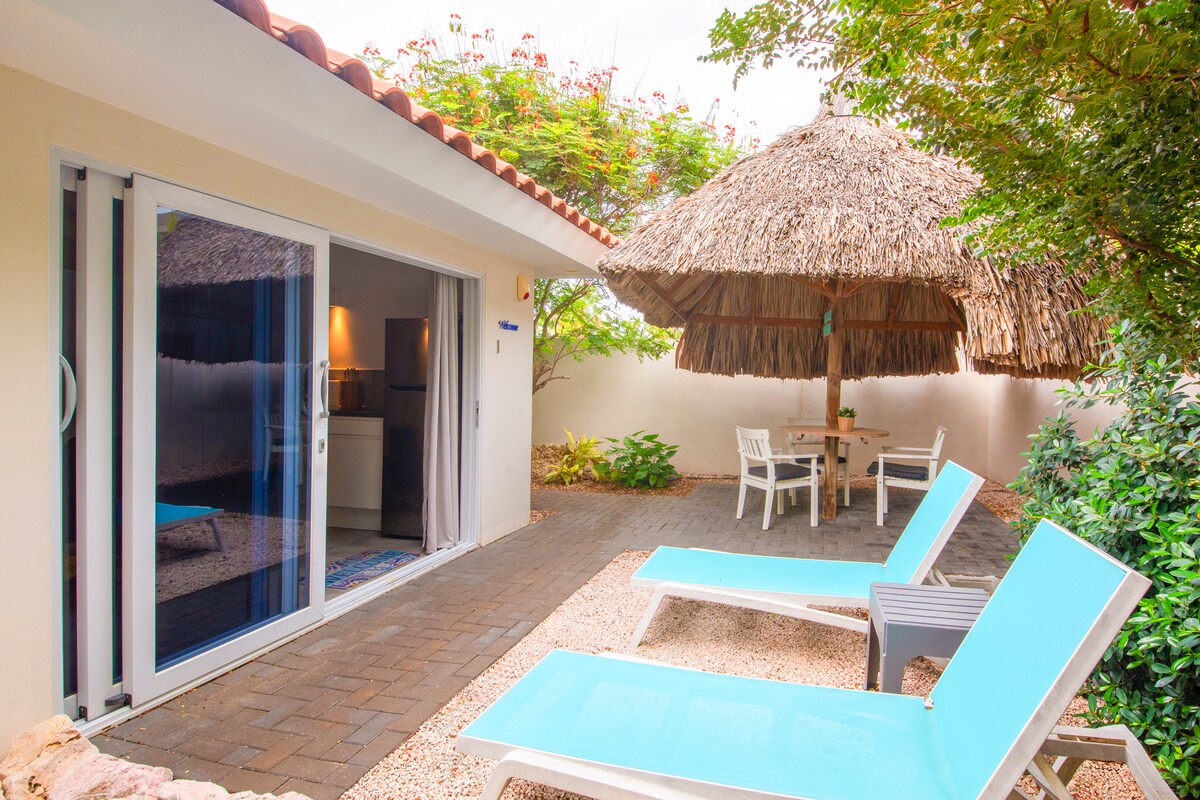 Miren oddih na plaži z zasebno verando v kraju Jan Thiel!