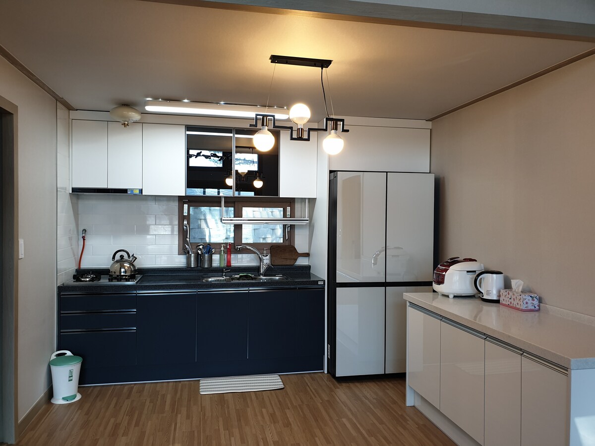 Zasebni penzion v slogu vile (notranji prostor 30 pyeong) 2 sobi, velika dnevna soba in kuhinja, stranišče, lep vrtni žar) 1 zakonska postelja in ondol, jedilna miza, hladilnik, stoječa klimatska naprava, ventilator, LED TV, plinski štedilnik, električni štedilnik, sušilnik za lase, kuhinjski pripomočki, vse toaletne potrebščine (šampon, pralnica za telo, zobna pasta, brisače, brisače za prhanje itd.). Za uživanje v prenočišču, ki je★ na voljo samo ena ekipa na dan. Odlično za★ družino, prijatelje, skupine in majhna skupinska srečanja. ★ Ocean, gora, dolina, topli vrelci in navodila za pot na enem mestu ★ Nahaja se sredi plaže Dongho-ri in plaže Hajodae, do plaže Hajodae, plaže Naksan, pristanišča Seosan in Kisamuna z avtomobilom v približno 2 do 10 minutah, tako da lahko kupite sveže ribe po razumni ceni na ribji tržnici, lahko pa uživate v morskem ★ribolovu in vžiganje. Prav tako se lahko zapeljete 30 minut do Seoraksan Main Gol, Sulimgol, pet barv in pet barvnih toplih vrelcev, žičnice Seoraksan in gozda Micheon Bone.