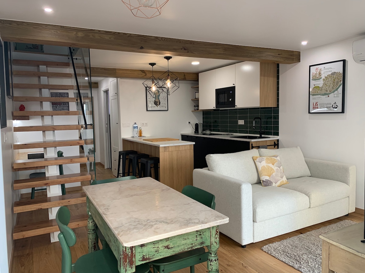 Apartma obnovljen z arhitektom, odlična zasebnost, izpostavljenost soncu, z Wi-Fi, in plaža na 150m. 1 suite s SPA in turško kopel z aromaterapijo. 1 apartma s teraso s pogledom na morje, kino projekcija zaslon. Soba s pogledom na morje, reko in teraso, kjer lahko uživate v prostoru za sedenje in žaru z žarom iz kovanega železa. Blizu restavracij, kavarn in supermarketov ter železniške postaje. Klimatska naprava in ogrevana tla v vseh prostorih, 4K TV in samostojna škatla na apartma.