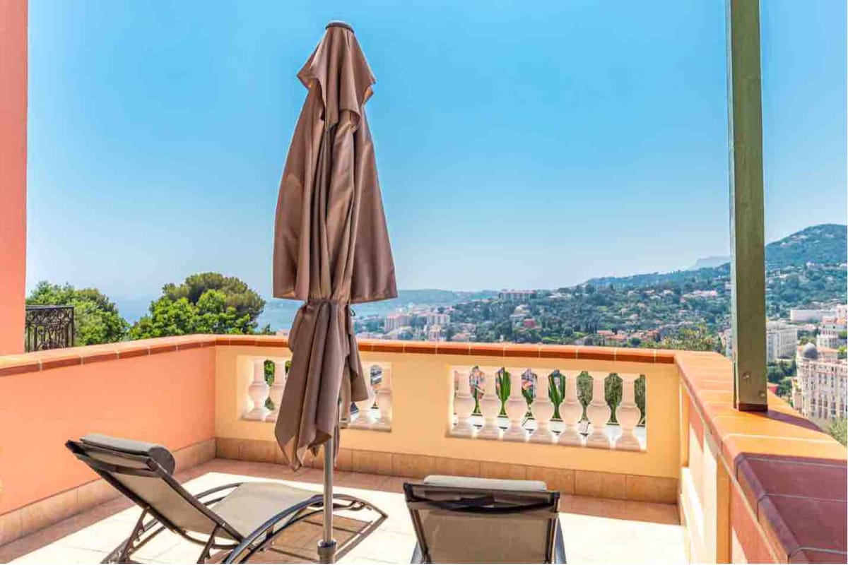 Villefranche • Vila s panoramskim pogledom na morje • Bazen in klimatska naprava