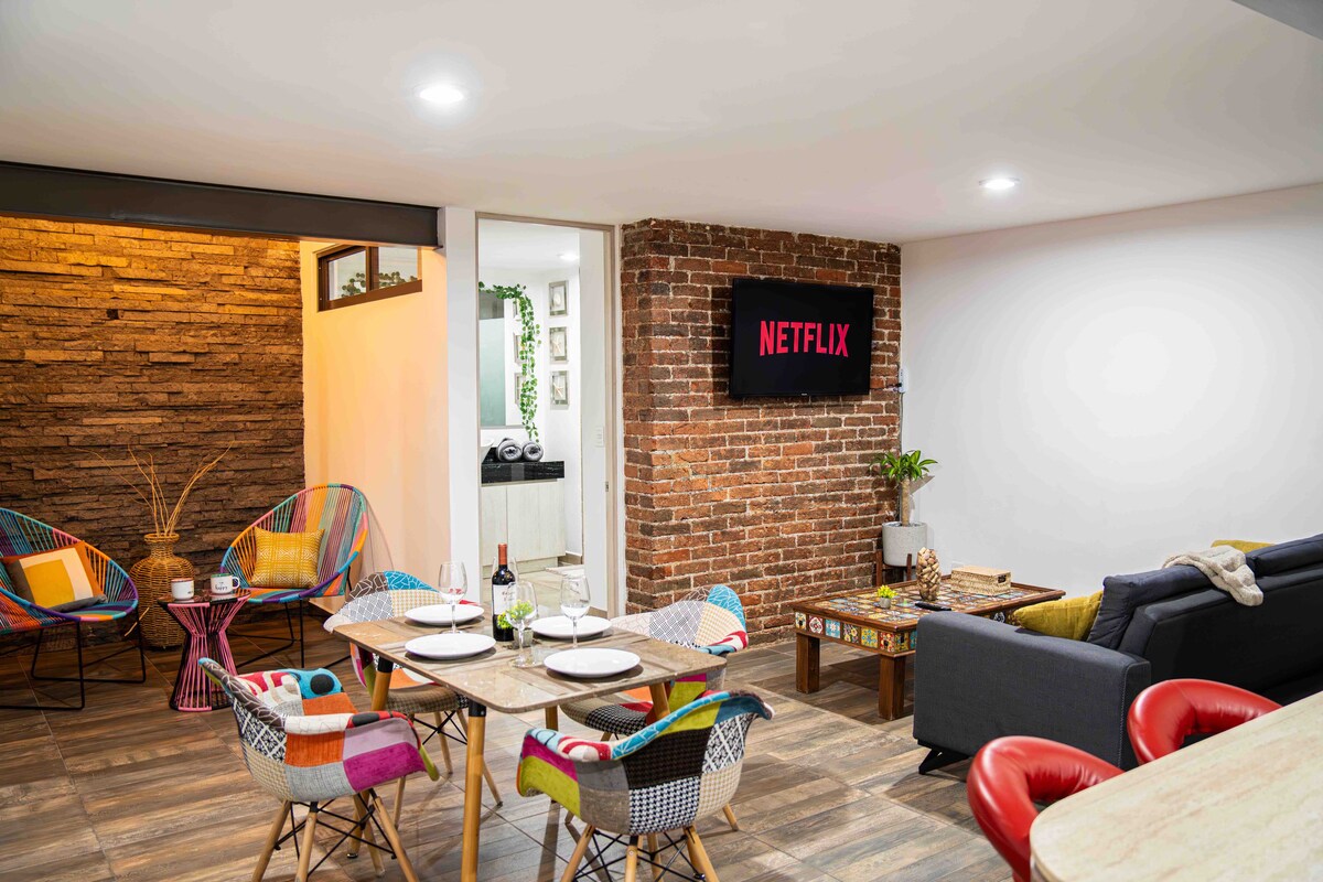 Odkrijte čarovnijo Morelije z našega očarljivega dvonadstropnega podstrešja, le tri ulice od katedrale. Ta edinstven prostor nudi polno kuhinjo, kopalnico, jedilnico, izjemno udobno posteljo in obrtne malenkosti, ki zajemajo lokalno bistvo. Uživajte v miru in povezavi z visokohitrostnim internetom, medtem ko se sprostite ob gledanju televizije. Avtentično doživetje, ki je oddaljeno od zgodovinskega središča mesta.