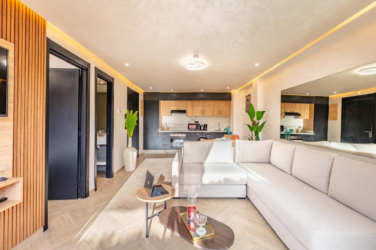 V središču mesta, v bližini restavracij, trgovin in opreme, vam to prostorno svetlo stanovanje ponuja edinstveno doživetje. Uživajte v zasebni masažni kadi, elegantni zasnovi, čudoviti terasi z gugalnico in vsem udobju: klimatska naprava v vsaki sobi, opremljena kuhinja, Netflix, rezervna posteljnina, deska in sušilniki. Vse je zasnovano tako, da bo vaše bivanje popolno. V skladu z maroško zakonodajo in hišnim redom neporočeni maroški pari niso dovoljeni