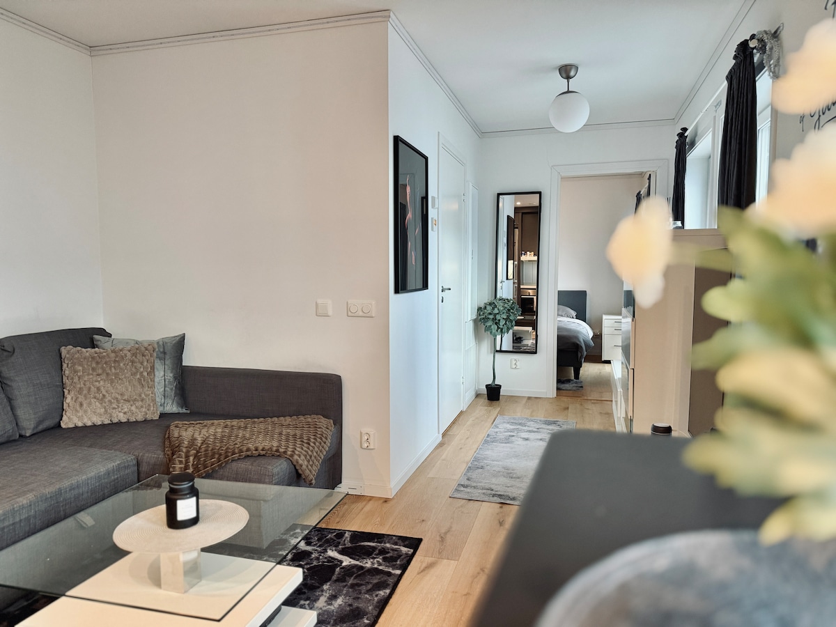 Dobrodošli v La Chic Nordic – premišljeno urejenem stanovanju, kjer se skandinavski minimalizem sreča s sodobno eleganco. Elegantno prenočišče, ki se nahaja na mirnem, vendar dobro povezanem območju Švedske, je zasnovano tako, da nudi udobje, slog in nepozabno bivanje.