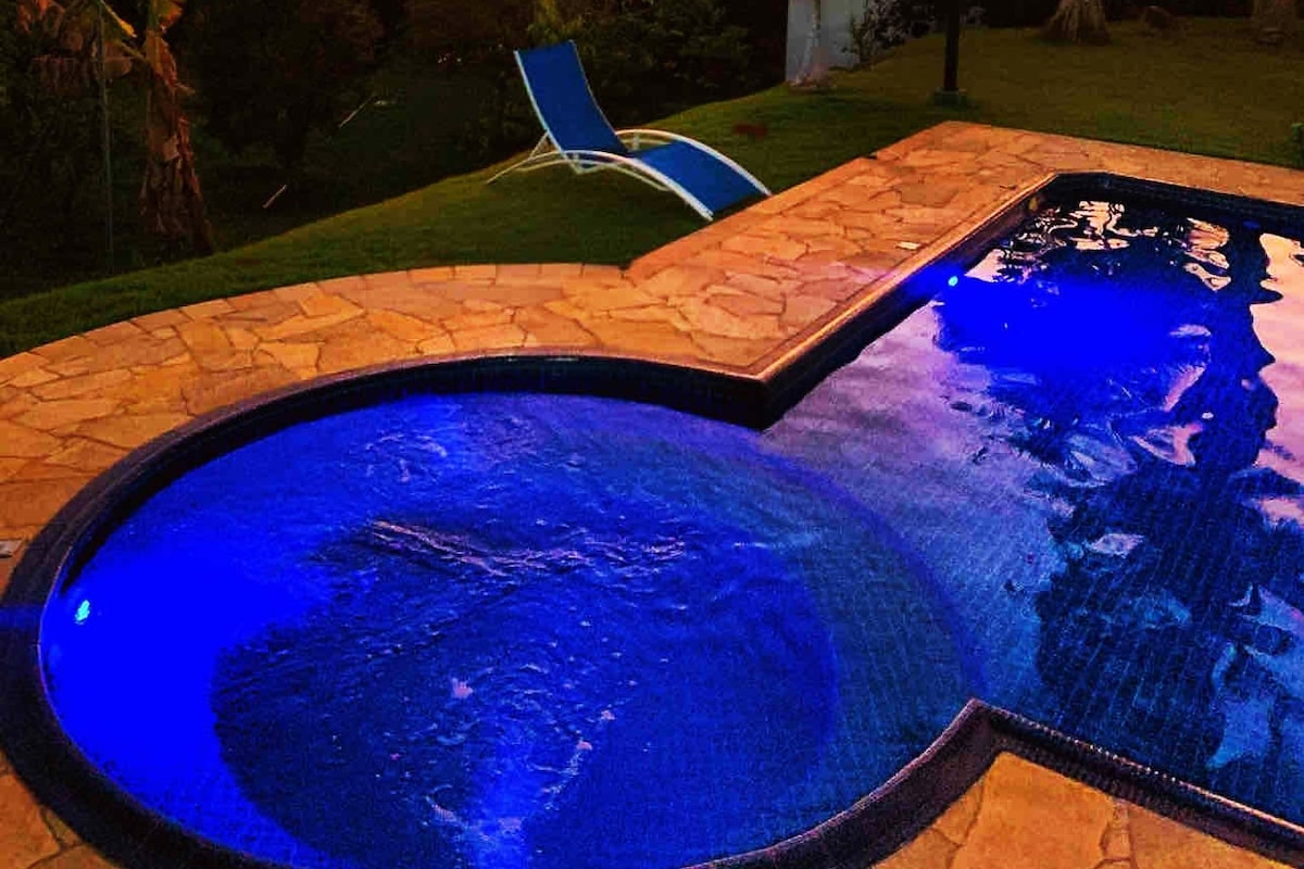Tiho, zelo zeleno in zabavno zagotovljeno za vse starosti v stanovanju varno zaprt 24 ur, 1:15 ur od São Paulo. Ta hišica na kopnem s približno 3.000 M2 udobno sprejme 07 oseb v fiksnih posteljah in ponuja: bazen, žar, pečico za pico, štedilnik na les, nogometni nogomet, igrišče za stolni nogomet in odbojko, jezero z ribami, rjave želve in črne labode, panj brez pikov, vrtec, sadovnjak, balkon z visečimi mrežami itd. Vse je narejeno za tvoje dobro.