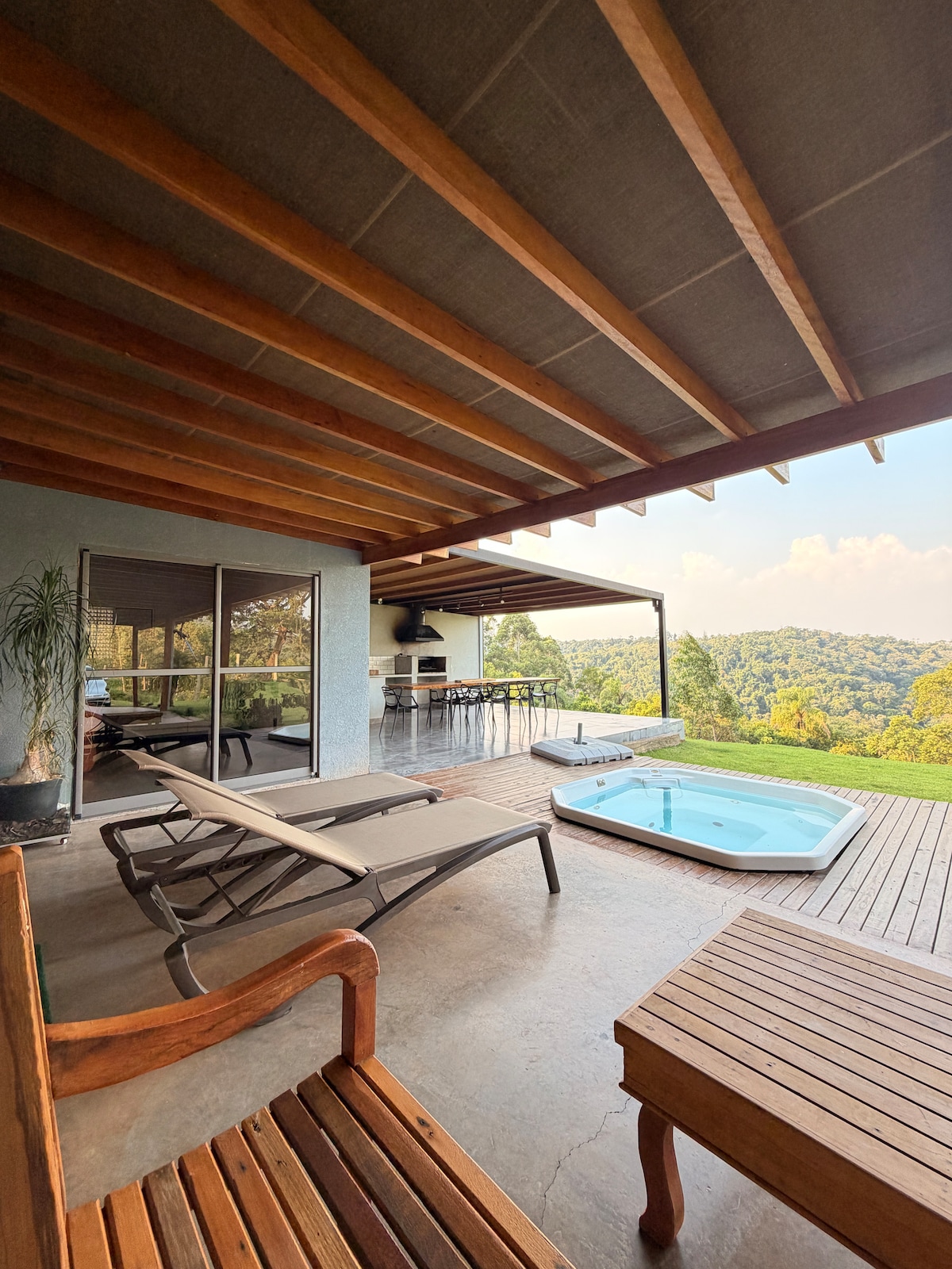 Relaxe com sua familia e amigos em um amplo espaço contando com casa sede com quatro quartos, sala 03 ambientes com lareira, Tv e internet Wifi. Área gourmet com churrasqueira, forno e fogão a lenha, salão de jogos com mesa de sinuca e ping pong; Piscina climatizada com aquecimento solar e uma vista panorâmica incrível! Espaço absolutamente perfeito para descanso mas também lazer e diversão! Lugar com muita privacidade, área verde, lazer e PAZ para sua familia! E tudo isso pertinho de SP =)