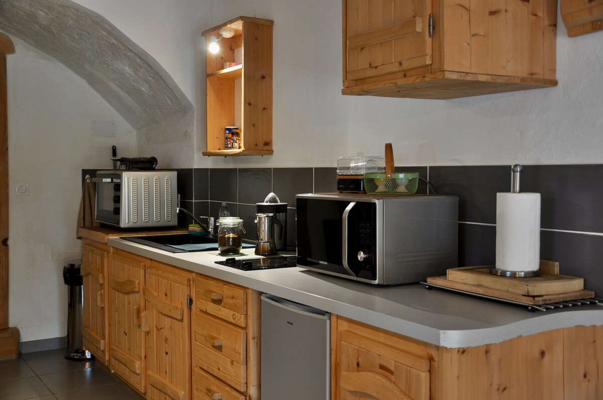 Le studio de 30 m2 se situe sous les voûtes de l’ancien four à pain de notre maison. La pièce à vivre se compose d’une petite cuisine équipée de l’essentiel, ainsi qu’un coin nuit avec un lit double; au fond des voûtes se cache une petite salle de bain indépendante. Isolé à la campagne au pied des montagnes, la terrasse privative vous offrira une belle vue sur la vallée de la Durance. Idéal pour se détendre vous pourrez également profiter sur place de départs de balade et du site d’escalade.