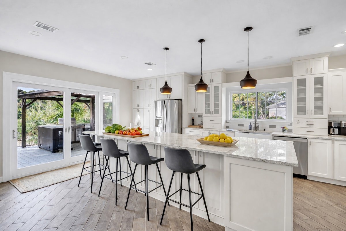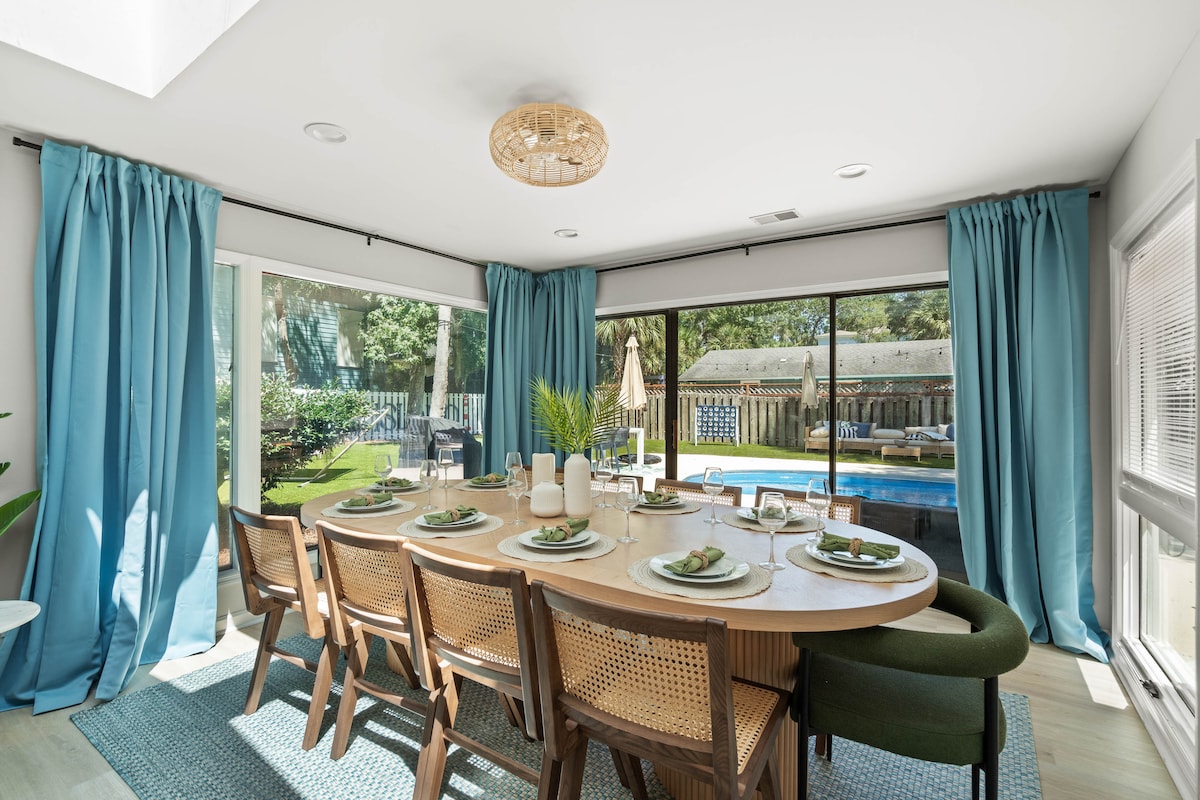 Welcome to BoHouse! (Bohemian House) Your luxury marsh front retreat on Wilmington Island! Newly renovated home on a quiet cul-de-sac with breathtaking sunsets over the marsh, abundant bird-life, and a 7 person hot tub. Sleeps up to 10, featuring stylish interiors, open plan living, and two fully equipped kitchens (indoor and outdoor) perfect for gatherings. Enjoy peaceful surroundings while being just 15 minutes from downtown Savannah and Tybee Island —ideal for an unforgettable coastal escape.