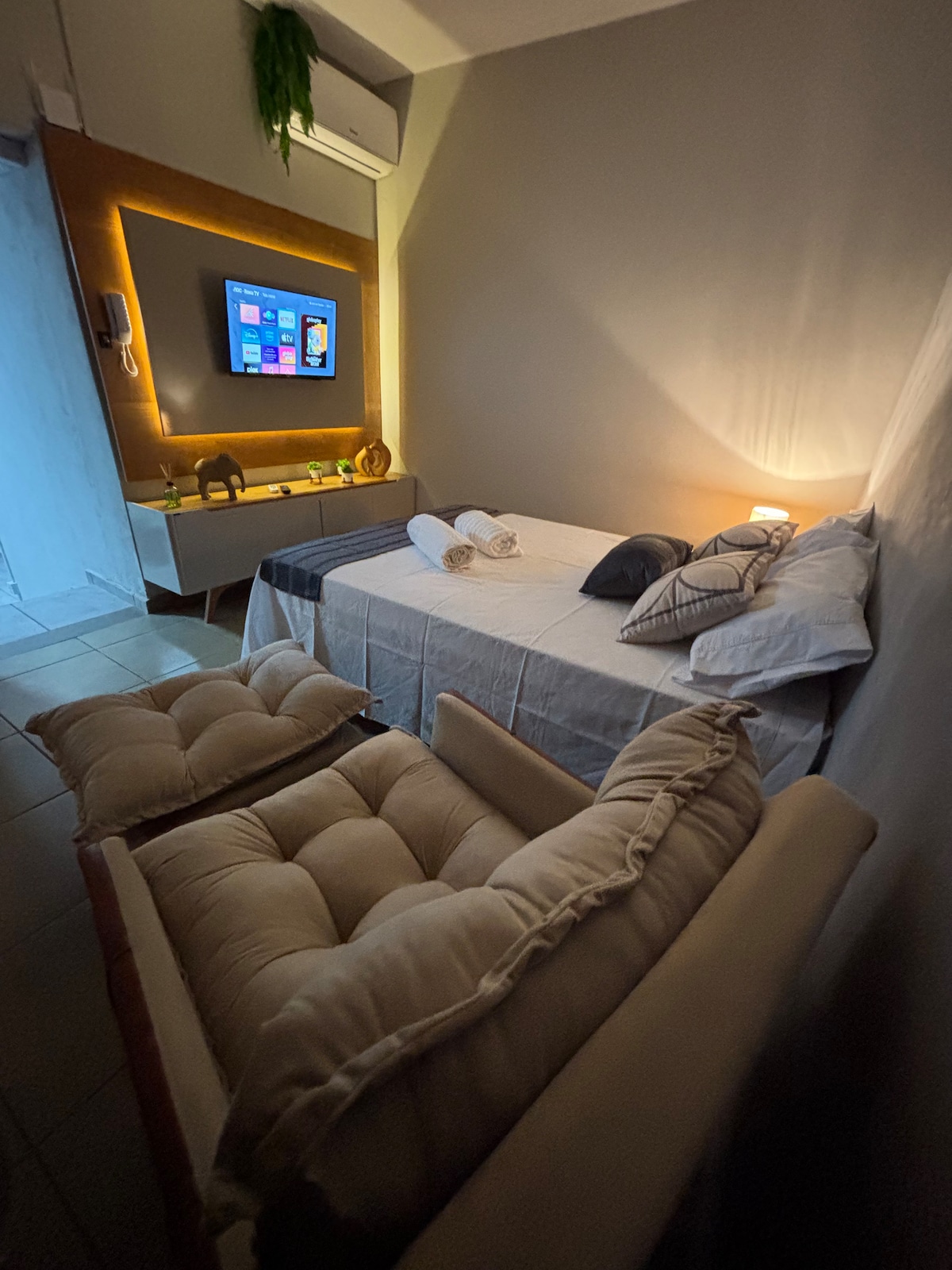 Único! (Pet-friendly) Prédio em condomínio, Lazer e segurança. Studio novinho e aconchegante com garagem priv, ar condicionado e internet (300MB), Tv42 + apple Tv + Chromecast, academia, piscina, sala reuniao, co-working e lavanderia Omo. Praticidade e requinte alto padrão em localização privilegiada. Ao lado do shopping center, hiper mercado, do hospital Amaral Carvalho e diversos bares e restaurantes, tudo isso a curta distancia a pé.