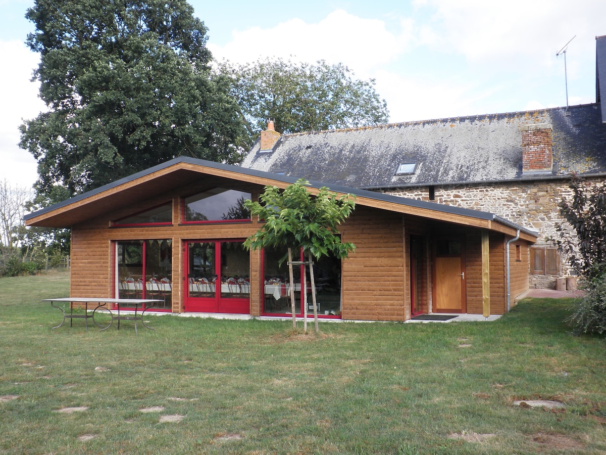 Prenovljen skedenj, ki je sestavljen iz 3 KM, je opremljen s kopalnico in spalnico v pritličju, ki omogoča dostop do ljudi z zmanjšano mobilnostjo. Možnost 11 sob. V neposredni bližini Fougèresa in 30 minut od Rennesa, 35 minut od Mont St Michel , 1 uro od Cancala in St Malo. Goste sprejemamo za vaše počitnice , vikende in delo (poslanstvo, zamenjava, seminarji itd.
