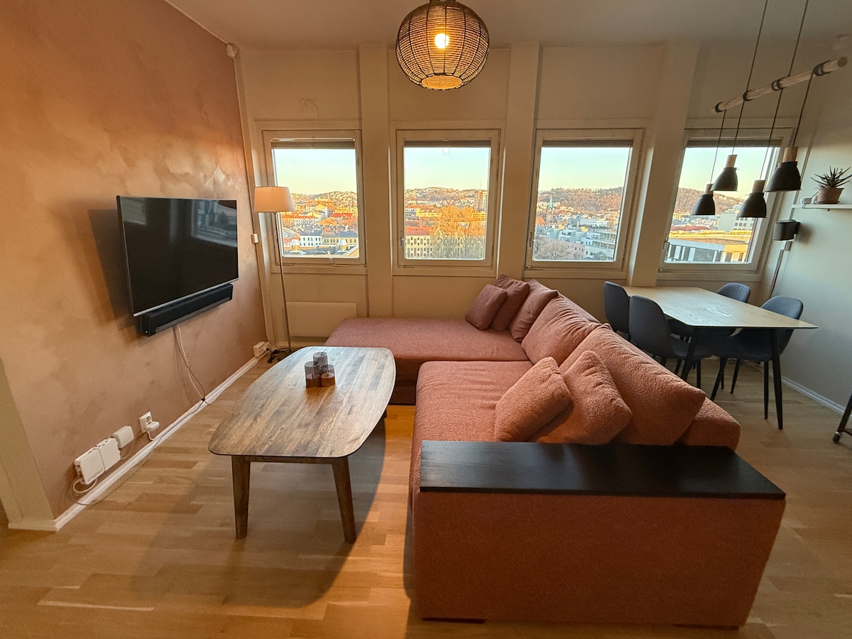 Velkommen til vår leilighet, sentralt plassert ved Grünerløkka. Leiligheten er nylig renovert og det er blant annet helt nytt kjøkken. Fra 10. etasje kan du nyte en fantastisk utsikt over byen, og på toppen av bygningen venter en felles takterrasse med panoramautsikt. Kort gangavstand til Oslo sentralstasjon, varierte restauranter, butikker og en botanisk hage. Leiligheten har 1 soverom med dobbeltseng og en stue med plass til 2 på en sovesofa, totalt 4 soveplasser.