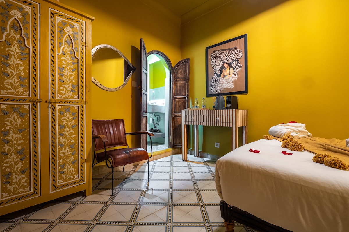Dobrodošli v Riad Dar l’artiste, zasebni nastanitvi s 4 spalnicami, ki ima tradicionalno maroško dnevno sobo, čudovito, popolnoma opremljeno kuhinjo in odlično teraso za vaše udobje in prijetno bivanje. Vsaka spalnica ima zasebno kopalnico, opremljeno s toaletnimi potrebščinami, brisačami in sušilnikom za lase. Riad s 4 spalnicami lahko udobno sprejme do 9 oseb. Ne glede na to, ali ste z družino ali prijatelji.