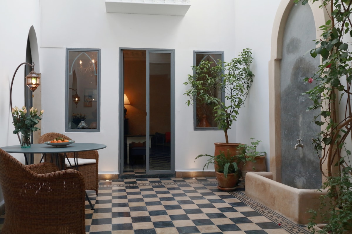 Notre Riad est une promesse d'évasion. Imaginez vos matinées bercées par le chant des oiseaux dans le patio et vos soirées sur la terrasse surplombant la ville rouge. Un mélange raffiné de zelliges traditionnels et de confort contemporain. Un salon de lecture pour s'évader, des chambres élégantes pour se ressourcer. Un patio rafraîchissant, pour le café du matin et un rooftop pour savourer le coucher du soleil. Hospitalité marocaine et confort absolu : votre parenthèse enchantée commence ici.