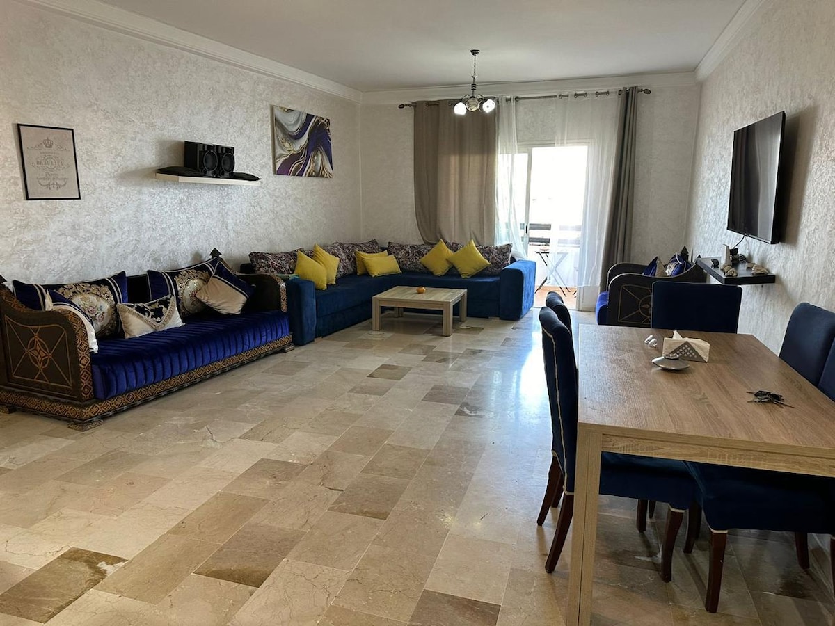Bel Appt v zaprti in varni razkošni rezidenci z bazenom in zasebnim vrtom, ki se nahaja 5 minut z avtomobilom in 20 minut hoje od Koutoubia in Medine. Nakupovalni center Al Mazar in Carrefour 7 min hoje. Brezplačna naročnina na NETFLIX in vsi televizijski kanali, ki so na voljo na IPTV. Možnost, da imate služkinjo/kuharico na zahtevo po nizki ceni.