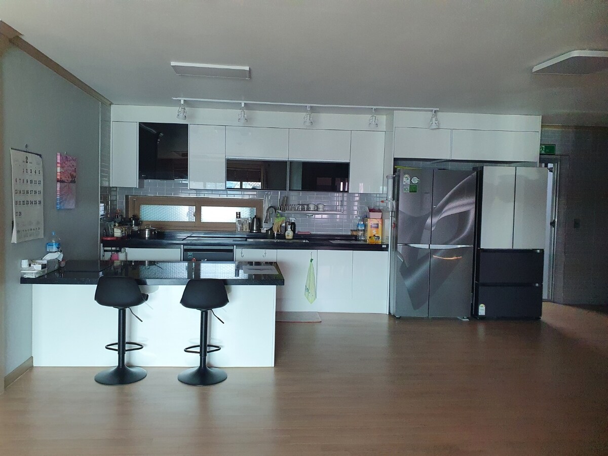 To je podeželska hiša z več sadnimi drevesi, ki se nahaja na višini 420 m pod samdobongom Demokratične gore, stran od živahnih turističnih znamenitosti narodnega parka Deokyusan in letovišča Muju. Do Taekwondo Won in Bandiland potrebujete približno 10 minut, do letovišča Deokyusan Muju pa 25 minut. V zaledju vasi lahko uživate tudi v naravnih lepotah doline. Stric House je najbolj izolirana lesena stavba v ameriškem slogu, ki jo je zasnovalo in zgradilo prestižno leseno gradbeno podjetje v Seulu. Strop je visok, poletje je hladno, zima pa je topla hiša, visok in široko odprt razgled ter vroč kraj za uživanje v ognjišču s pogledom na zvezdo. V prvem nadstropju je prostor gostitelja, 56 m2 (vključno s teraso) v drugem nadstropju pa je hiša za goste. Ima ločen vhod in ni neudobna hiša, ker obstaja gostitelj, vendar je bolj cenjena, ker lahko takoj dobite pomoč in storitev. Stric Style BBQ je odličen kraj za ameriško družino, kulinarične spretnosti, ki jih spremlja stričeva hiša, pa so zelo nadarjene. Sončna soba z zasebnim zunanjim kaminom je daleč najboljša ♡