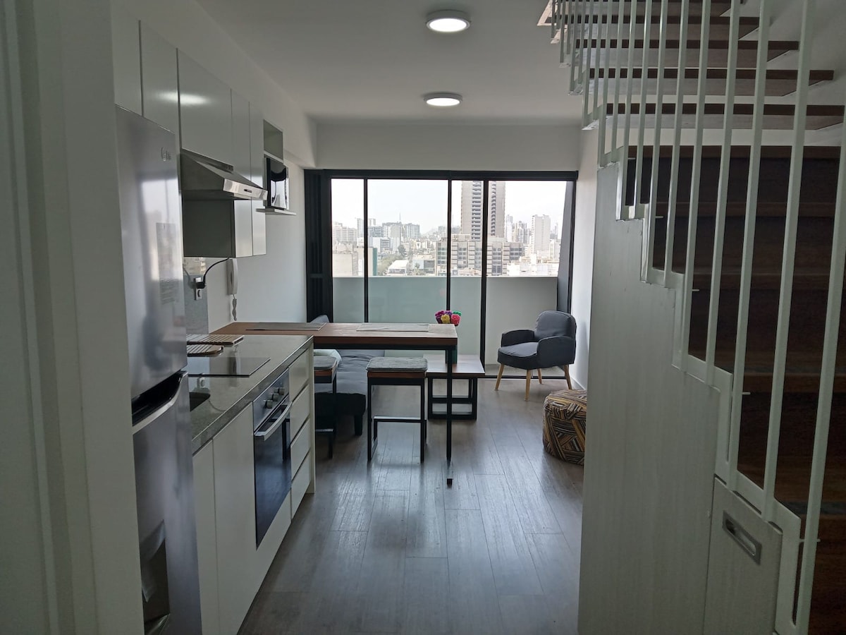 Čudovito pametno strešno podstrešje sredi Mirafloresa, ima odličen razgled, odlično lokacijo, zasebnost in varnost. Neomejena topla voda na masažni kadi (grelnik je bil pred kratkim 22. septembra), tako da bo masažna kad VROČA garancija, pol kuhinje, LED TV s kablom Hitra in zanesljiv Wi-Fi. peš do supermarketov in vse. v 6. nadstropju je samo ena slaba stran brez dvigala, vendar se splača zaradi razgleda. Televizijo, glasbo,žaluzije in luči lahko upravljate s pomočjo Alexe.