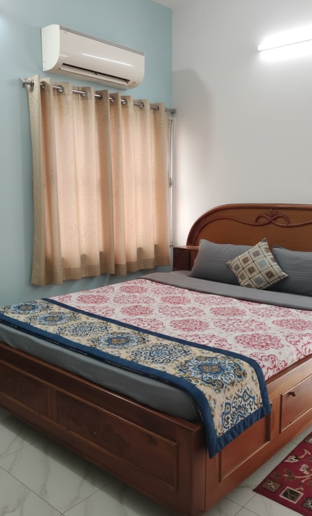 Ranchi 's Secret Sanctuary: 2BHK Escape Awaits! > Sprostite se v tem mirnem 2BHK pobegu. > Trdno spite na plišaste posteljah pod klimatsko napravo. > Binge-watch predstave, pripravite okusne obroke ali se sprostite na zasebni terasi, obdani ob mesečini. > Z lahkoto se sprostite na stres in parkirajte avto. > Sprostite se, ponovno povežite in ustvarite trajne spomine na Ranchi! > Brezplačen Wi-Fi in popolnoma opremljena kuhinja sta vključena. Rezervirajte svoj mir še danes!