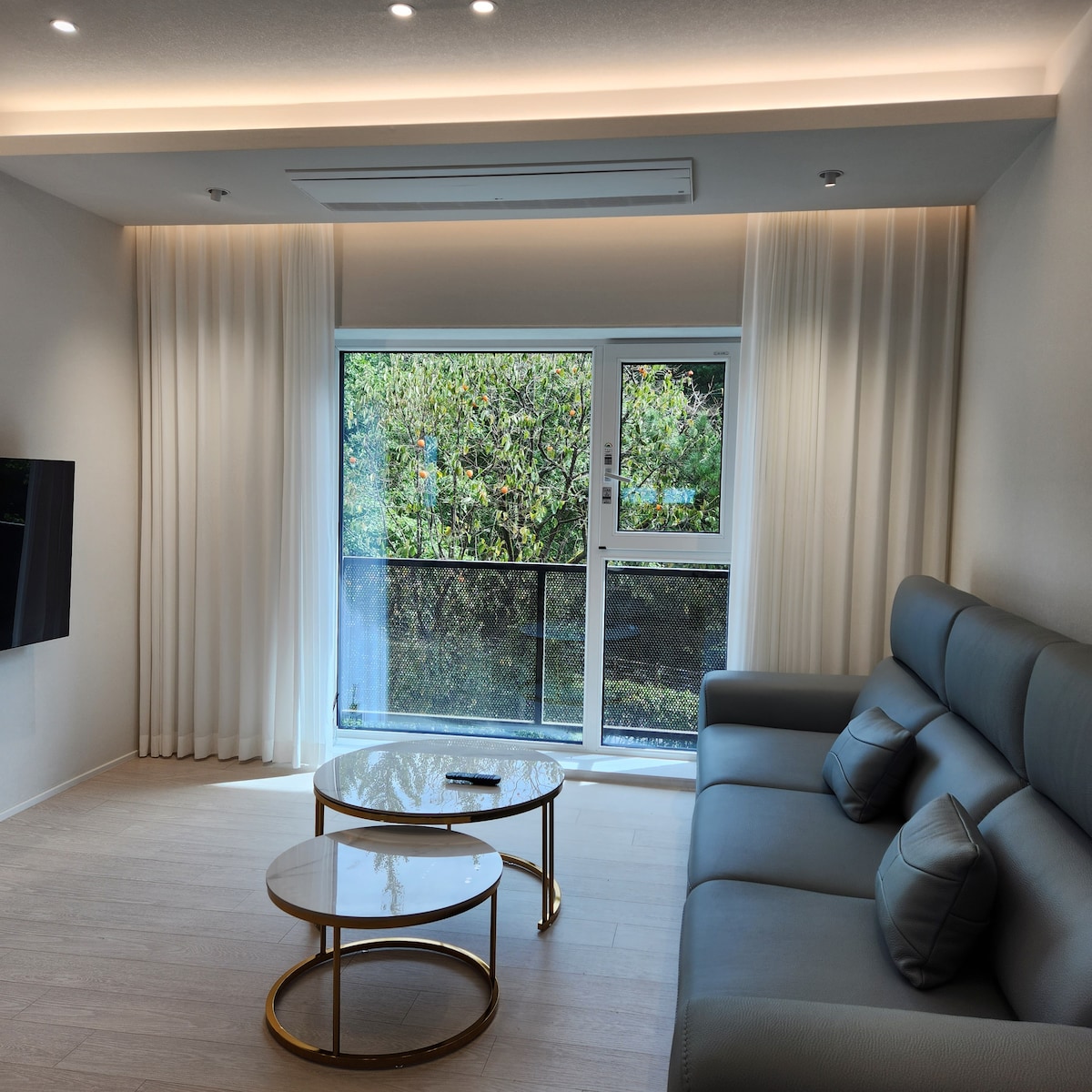 Gre za komercialno nastanitev, ki se nahaja v 3. nadstropju stavbe 30 pyeong. Ni dvigala. Na voljo so 3 sobe, dnevna soba, kuhinja in 2 stranišči. Dnevna soba in kopalnica sta bili pred kratkim prenovljeni in čisti.Seveda je tudi kopalnica s kadjo čista. Kopalna kad Jocheok je dovolj, da se lahko v vodi igra največ 5 malčkov. Na dvorišču je vodna pištola, s katero se lahko igrate v vodi. To je odličen kraj za družinska in prijateljska potovanja. Je čudovita in okrašena, da se lahko gostje čim bolj počutijo kot doma, ne da bi ga bilo mogoče objaviti na Instagramu. Še posebej vas skrbi, da se bodo starši z otroki zlomili ali poškodovali. Zato smo zmanjšali število dekorativnih predmetov. V bližini je veliko priročnih objektov, kot so restavracije, tržnice in trgovine, zato je priročno. Za več kot 2 otroka, mlajša od 24 mesecev, je treba doplačati.