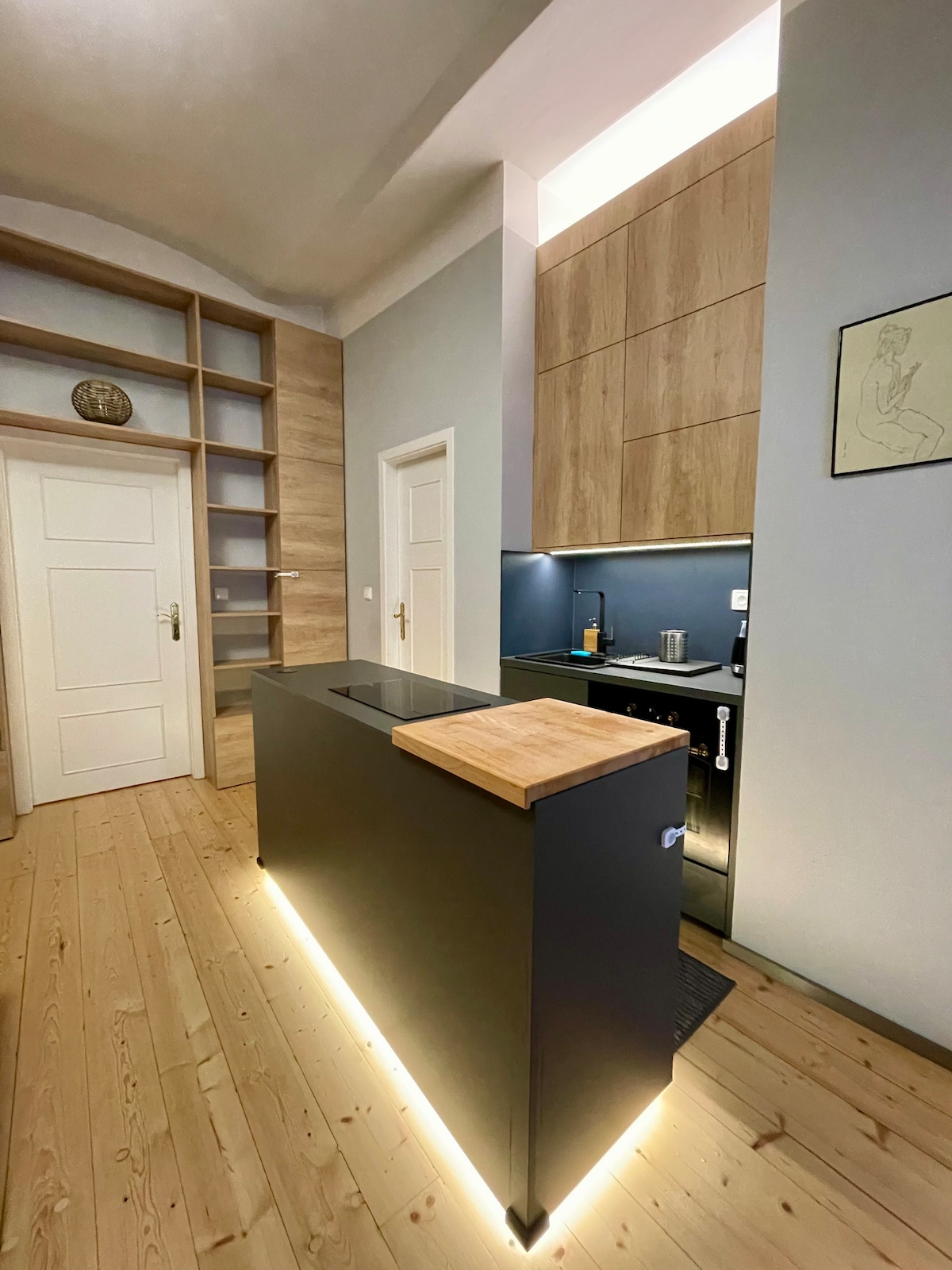 Sodobna in svetla enosobna garsonjera ( približno 31 m²), ki se nahaja v razkošnem okrožju Waltrovka v Pragi 5. Stanovanje je popolnoma opremljeno z zasebno teraso in podzemnim parkiriščem. Waltrovka ponuja zelenje, igrišča, trgovine, restavracije in kavarne, vključno s Starbucksom – odlična izbira za udobno bivanje v sodobnem območju z odličnim dostopom do središča mesta Praga. Podzemna železnica (linija »B«) je oddaljena 5 minut hoje.