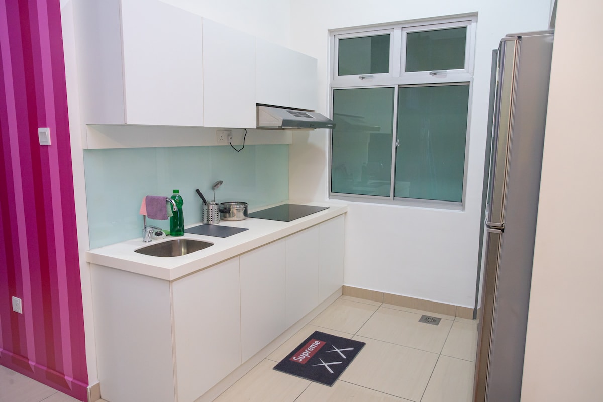 Bivajte v elegantnem, popolnoma opremljenem predelanem stanovanju, ki je le nekaj korakov stran od mednarodne šole Sunway International School in 2 minuti hoje do parka Sunway Big Box in X-treme Park. Le 5 minut od Legoland Malezije je kot nalašč za zabaven oddih ali sproščujoč oddih. Uživajte v hitrem Wi-Fi-ju, brezplačnem parkiranju ter polnem dostopu do bazena in telovadnice. Z vrhunskimi znamenitostmi na vašem pragu je to idealno prenočišče za družine, pare in poslovne popotnike. Rezervirajte zdaj za popoln oddih.
