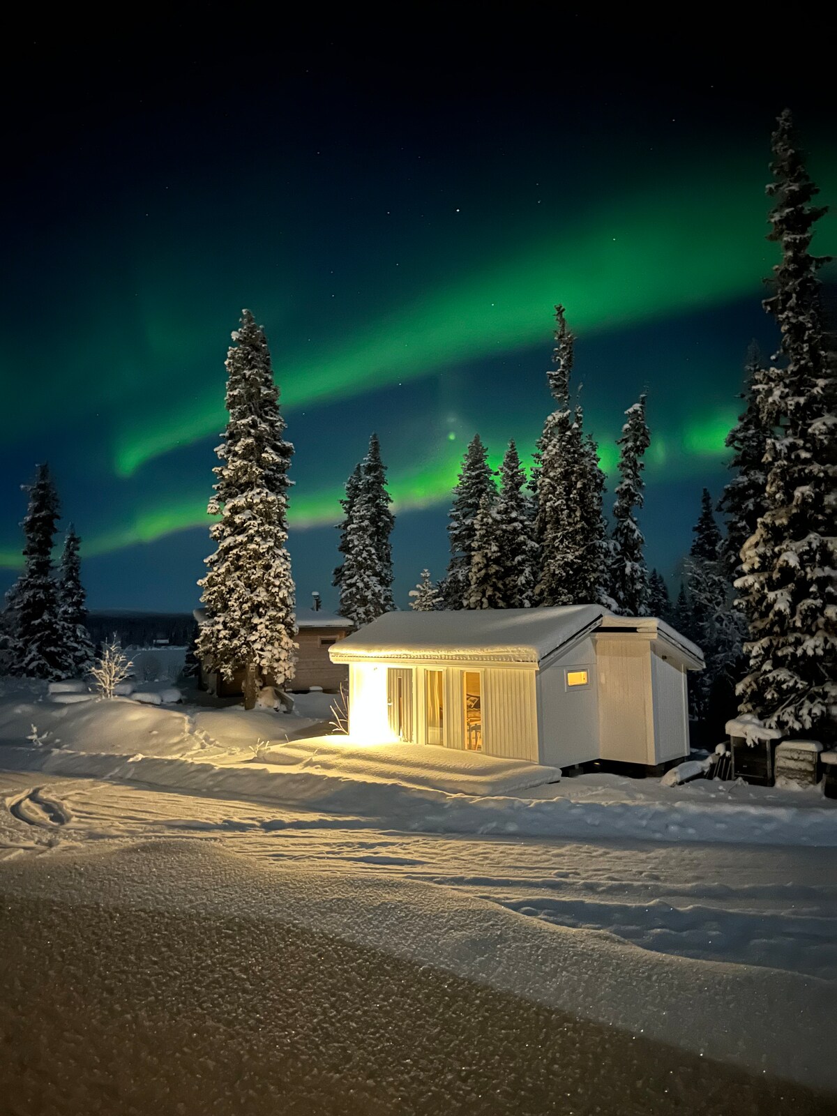 Dobrodošli v naši koči na naši kmetiji ob reki Torne. Hiša se nahaja skupaj s staro leseno delavnico, kjer so predniki več generacij izdelovali tradicionalne lesene čolne za reko Torne. Odmaknjena in odprta lokacija v rečni dolini je kot nalašč za ogled čudovitih severnih sij v zimskem času, saj ni motečih uličnih svetilk ali prometa. Nahaja se 6 km od Jukkasjärvi in Icehotela. 25 km od Kirune (20 minut vožnje z avtomobilom po dobro vzdrževani cesti).