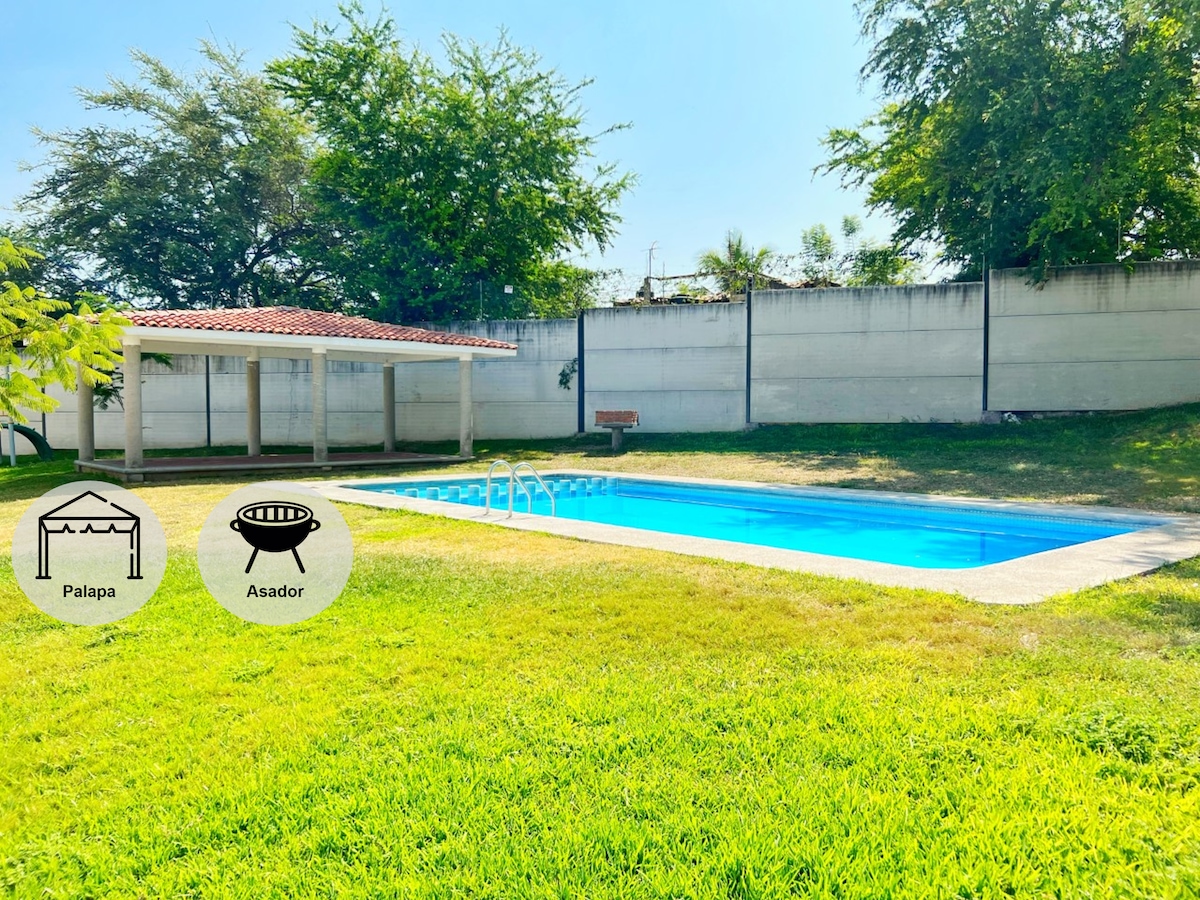 Všeč vam bo naša hiša, kjer lahko uživate v dnevih sprostitve in zabave s svojo ljubljeno osebo, družino ali skupino prijateljev. Zasebni bazen in parkirišče. Od vodnega parka El Rollo je oddaljen 15 minut, Tequesquitengo in 25 minut do parka Jardines de México. Bivajte v hiši in uživajte ob bazenu in opazujte barve sončnega zahoda in sončnega vzhoda. Odkrijte zvoke različnih ptic Morelosa, medtem ko se zbudite v tej čudoviti zvezni državi Mehiki