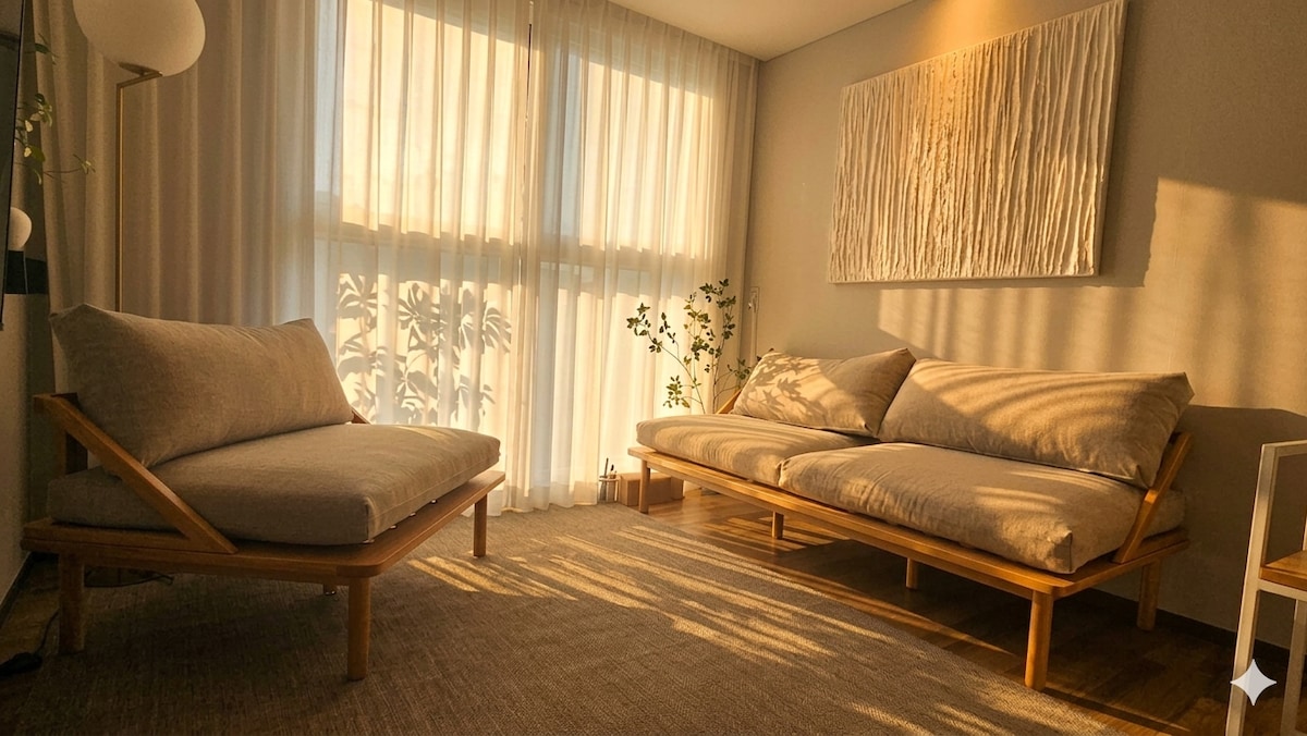 V osrčju Seula, kjer mesto ponoči svetleje — dobrodošli v Dongdaemunu. Za razliko od živahnih ulic zunaj naše bivališče ponuja mirno in udobno bivanje s toplimi lesenimi toni in mehko osvetlitvijo — popoln kraj za sprostitev po dolgem dnevu. - 10-15 minut hoje do nakupovalnega središča DDP in Doota - 5-10 minut hoje od izhoda 6 (ali izhoda 4 za dvigalo) postaje Dongdaemun History & Culture Park (vrstice 2, 4, 5) - Od letališča: z avtobusom 6001 do postaje hotela Baiton (2–5 minut hoje)