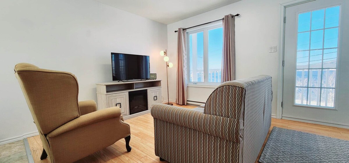 Uživajte v nepozabnem bivanju v tem prenovljenem stanovanju s čudovitim razgledom na gorovje Valins in fjord Saguenay. Stanovanje ima zakonsko posteljo, teraso s panoramskim razgledom, parkirišče in dostop do skupnega bazena v pritličju. To stanovanje je opremljeno s klimatsko napravo in vso opremo, ki jo potrebujete, da se počutite kot doma. Uživajte v čudovitem razgledu s terase. Rezervirajte zdaj za nepozabno bivanje.