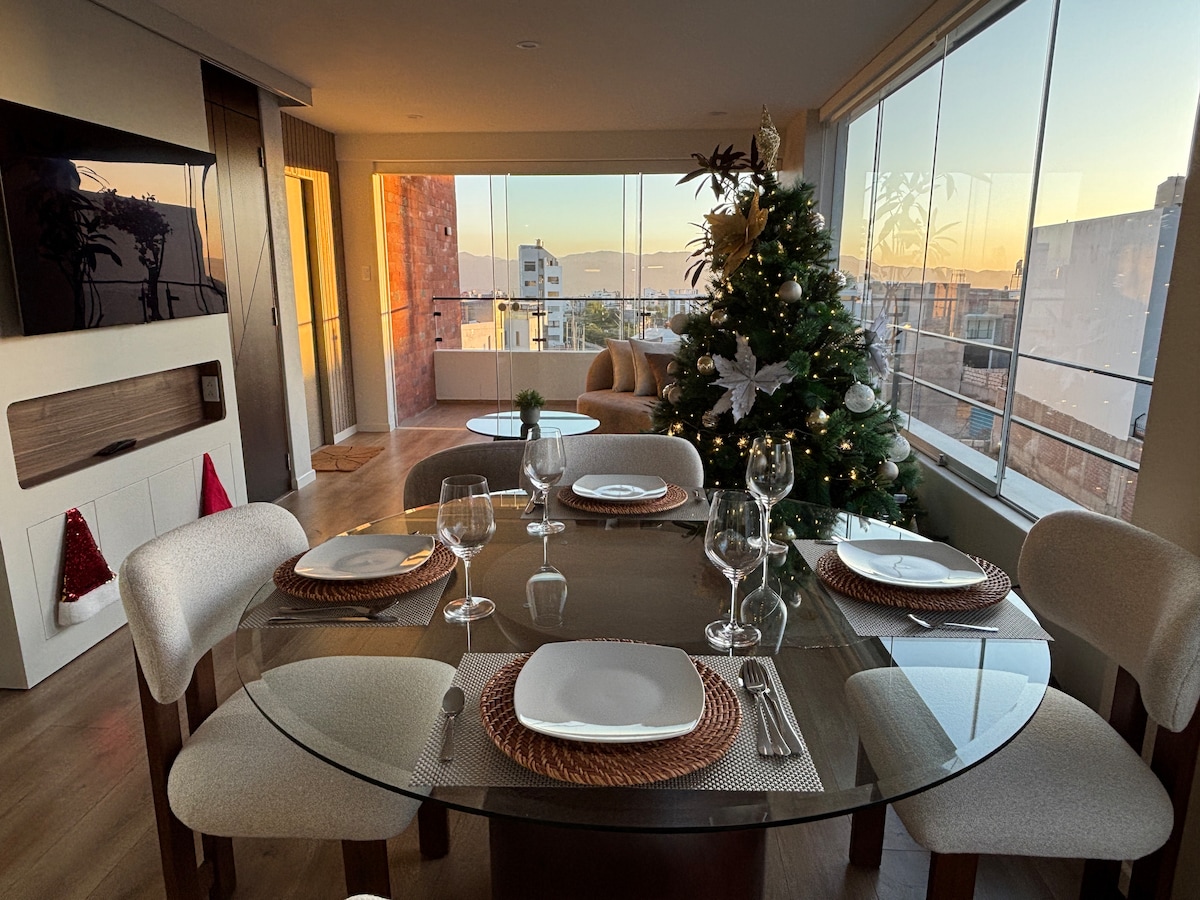 Udobno sodobno stanovanje v središču Arequipe, kot nalašč za pare, popotnike ali poslovne goste. Uživajte v svetlem bivalnem prostoru, popolnoma opremljeni kuhinji, udobni spalnici, čisti kopalnici in hitrem omrežju Wi-Fi. Nahaja se le nekaj minut od glavnih znamenitosti, restavracij in javnega prevoza, kar omogoča enostaven dostop do glavnih mestnih znamenitosti. Mirno in priročno zatočišče za nepozabno bivanje. Prilagodljiv prihod in pozoren gostitelj, ki vam je pripravljen pomagati.