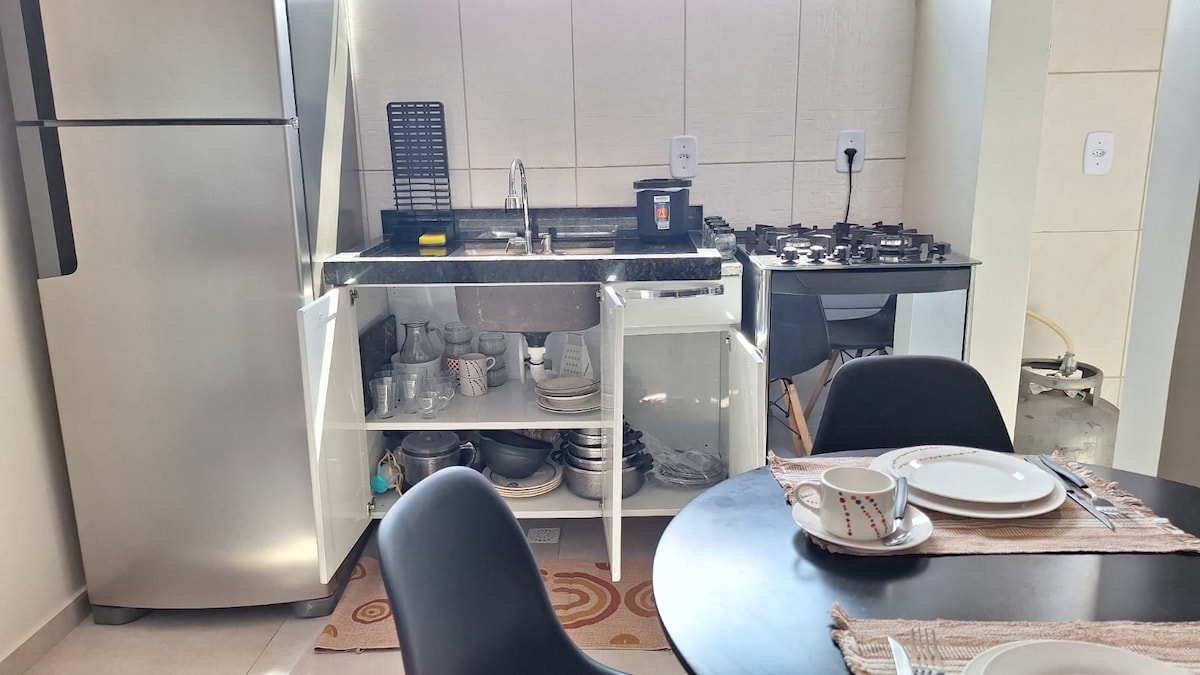 2 udobni klimatizirani spalnici z zatemnitvenimi ogledali in zavesami, z 1 spalnico z zakonsko posteljo in drugo spalnico, 2 enojnima posteljama Dnevna soba s kavčem in pametno televizijo ter ventilatorjem za prosti čas Prostorna jedilnica za obroke z družino ali prijatelji Kuhinja z vso opremo Funkcionalna kopalnica Ima električno prho in brisače Mirno in mirno okolje. Nahaja se v bližini Univasfa, Parque Josepha Coelho, Academia BGT in dveh supermarketov
