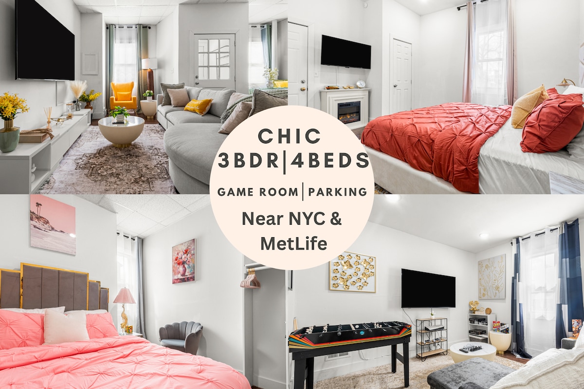 Stylish 3BR w/Game Room+Parking Near NYC & MetLife