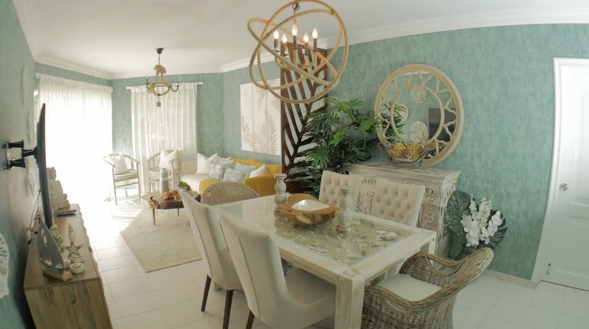 Este elegante alojamiento es ideal para viajes en grupo. Con vista a la piscina, agua caliente cercano a la playa con una distancia de 10 minuto, tiene alrededor restaurante, farmacia, banco. Está a 25 minuto del aeropuerto y una hora y media de Puntacana y una hora y media de semana, tiene una hermosa de terraza y una hamaca, está a media hora de casa de campo, tres habitaciones, tiene elevador y una área para compartir en la piscina muy acogedora