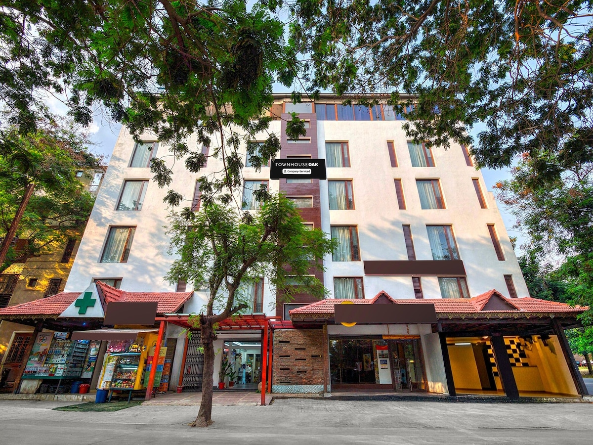 BLUO PRENOČIŠČA - nagrajena prenočišča! Novo zgrajen oblikovalski studio za samske vodstvene delavce/pare, ki delajo v Gachibowliju, Hitech City, Jubilee Hills, 5 minut do bolnišnice AIG. Zasebna garsonjera ima zakonsko posteljo (Queen), delovno mizo, TV z ravnim zaslonom, sedežno garnituro v kopalnici, balkon in polno kuhinjo s štedilnikom, hladilnik, mikrovalovno pečico, kuhinjsko posodo itd. Namestitev ima vrt s teraso, dvigalo in parkirišče. All-inclusive Daily Tariff - Wi-Fi Internet, Netflix/Tatasky, Čiščenje, Pralni stroj, Komunalne storitve, Parkirišče, 100% Power Backup