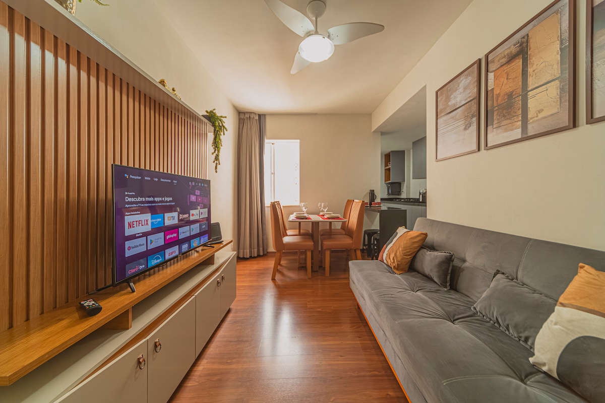 Super udobno studio stanovanje z nepremagljivo lokacijo za vaše delo in/ali prostočasne obveznosti. ► Zakonska postelja z vzmetnico; ► Smart TV 40” (vključno z Netflix, Prime Video, Disney+ e Globoplay); ► Klimatska naprava; ► ventilator Turbo; Žaluzije za► zatemnitev; ► Garderoba z obešalniki; Zvočna► škatla Bluetooth; ► Miza za študij/delo s svetilko; ► Kavč na kavču; ► Miza za hrano; ► Opremljena kuhinja za pripravo majhnih obrokov.