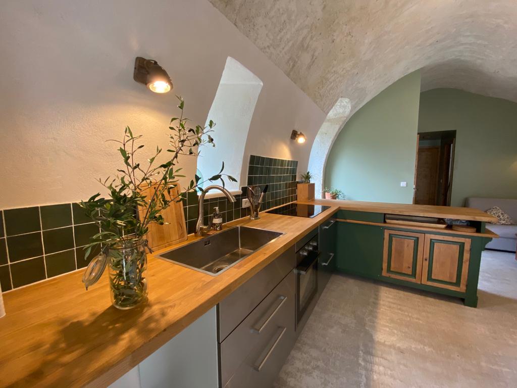 Obokano stanovanje velikosti 120 m2 je sestavljeno iz odprte kuhinje z jedilnico in dnevno sobo, 2 veliki sosednji spalnici, s kopalnico in prho (vsaka z WC-jem) in zasebnim dvoriščem. Nahaja se v osrčju vasi na robu garrigues, v bližini Pont du Gard (15 minut od postaje Nîmes Pont du Gard TGV, 20 minut od Arènes de Nîmes, 25 minut od Uzèsa, 45 minut od Camargueja in plaž). Dostop do bazena lastnikov od začetka maja do konca septembra.