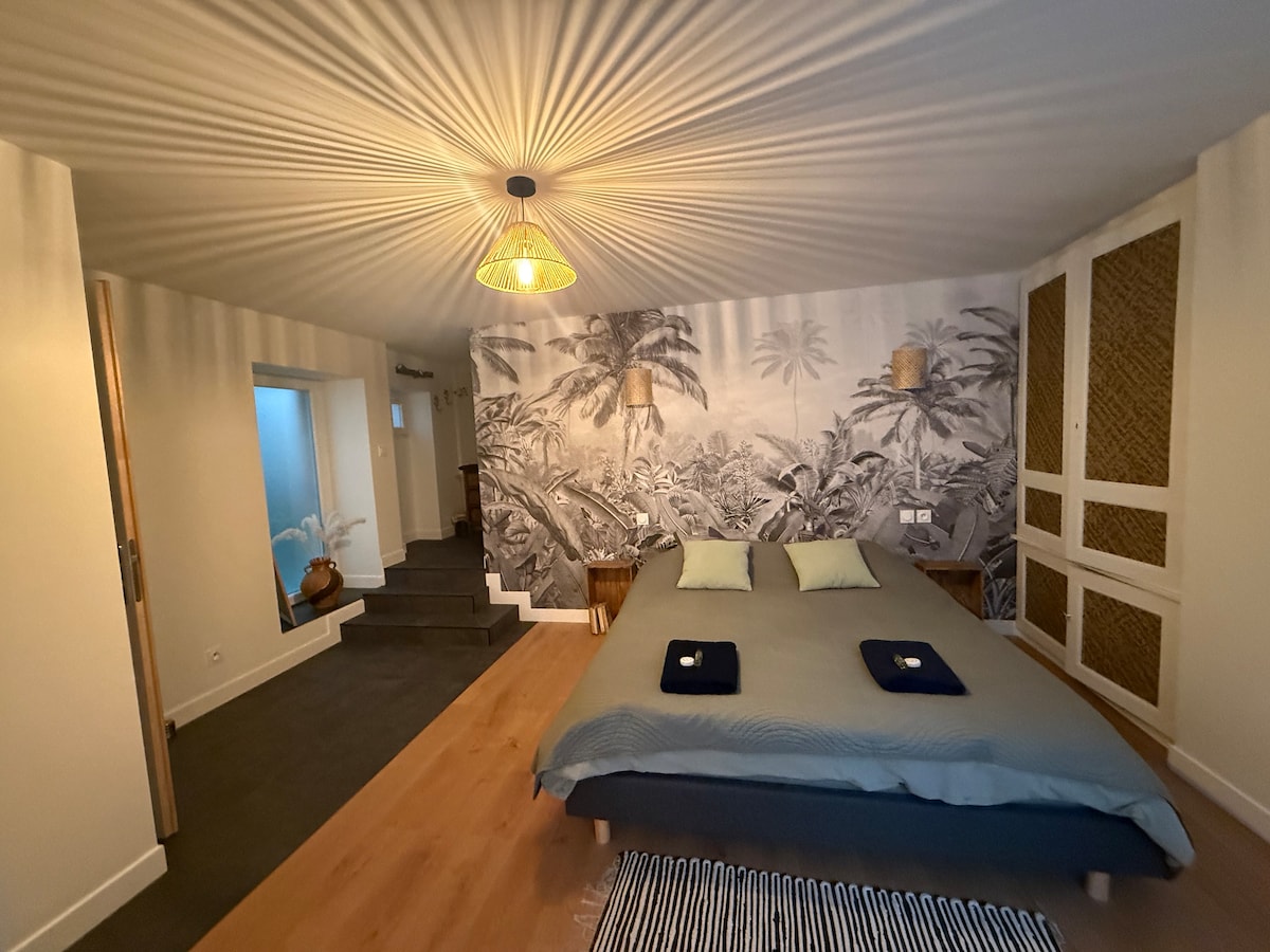"Le nid des amoureux" est l'endroit idéal pour les couples en quête de détente et de zénitude. Cette maison de 70m2 entièrement rénovée a été aménagée et décorée dans des teintes et des matières naturelles par une déco addicte. Ce cocon douillet est l'endroit idéal pour se retrouver à deux et passer un bon moment en amoureux. Les + : jacuzzi, pièce massage, vidéo projecteur avec home cinéma Belles prestations, décoration soignée et jolies matières telles que le béton ciré, lin, coton bio..