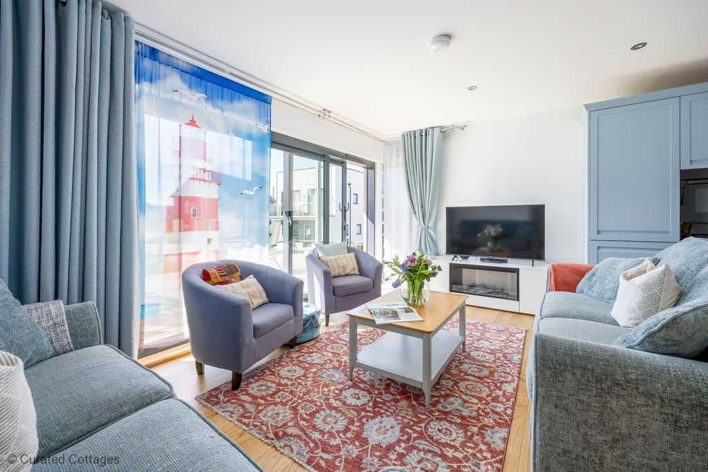 Na novo zgrajena 3 nadstropna samostojna hiša s čudovitim pogledom na pristanišče, 5 min do plaž Sandbanks. Neposreden dostop do vode, kajaki, ki so na voljo za najem. 2 od 5 spalnic imata pogled na morje in si delita balkon. Vseh 5 spalnic ima en-suites, glavna spalnica pa ima samostojno kopalnico s pogledom na morje. Ima po meri razporeditev prostorov z odprto kuhinjo/jedilnico v 3. nadstropju, ki kar najbolje izkorišča osupljiv razgled na najvišji nivo hiše.