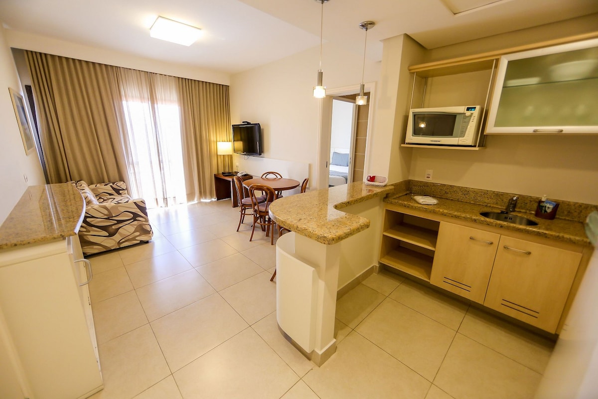 Lepa in udobna garsonjera v osrčju kraja Jurerê. The Jurerê Beach Village is “foot in the sand” , located by the sea of Jurerê Beach - one of the best and most beautiful beaches in Santa Catarina. Ima popolno infrastrukturo za prosti čas, vključno s čudovitimi bazeni, restavracijo, rekreacijo, storitvijo na plaži, igralnico, igralnico, jacuzzijem in fitnesom Za največ 3 osebe. Iz vljudnosti zagotavljam dnevno čiščenje, posteljnino, kopalne kadi in brisače za bazen.