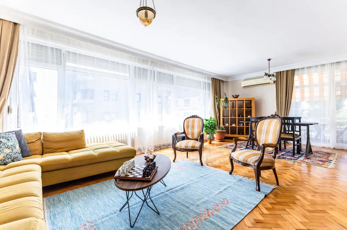 To prostorno in elegantno stanovanje 3BR, ki se nahaja na ulici Pavlonya, enem najbolj živahnih in osrednjih predelov Kadikoya, sprejme do 6 gostov. **POMEMBNO: Stanovanje se nahaja v 4. nadstropju in je dostopno po stopnicah. Naše osebje bo nosilo vašo prtljago.** S toplo osvetlitvijo, izpostavljenimi opečnimi stenami in udobnim bivalnim prostorom je idealen za družine ali skupine. Le nekaj korakov stran od lokalnih kavarn, butikov, barov in javnega prevoza ponuja popolno mešanico udobja, oblikovanja in neverjetne lokacije na Kadikoyu